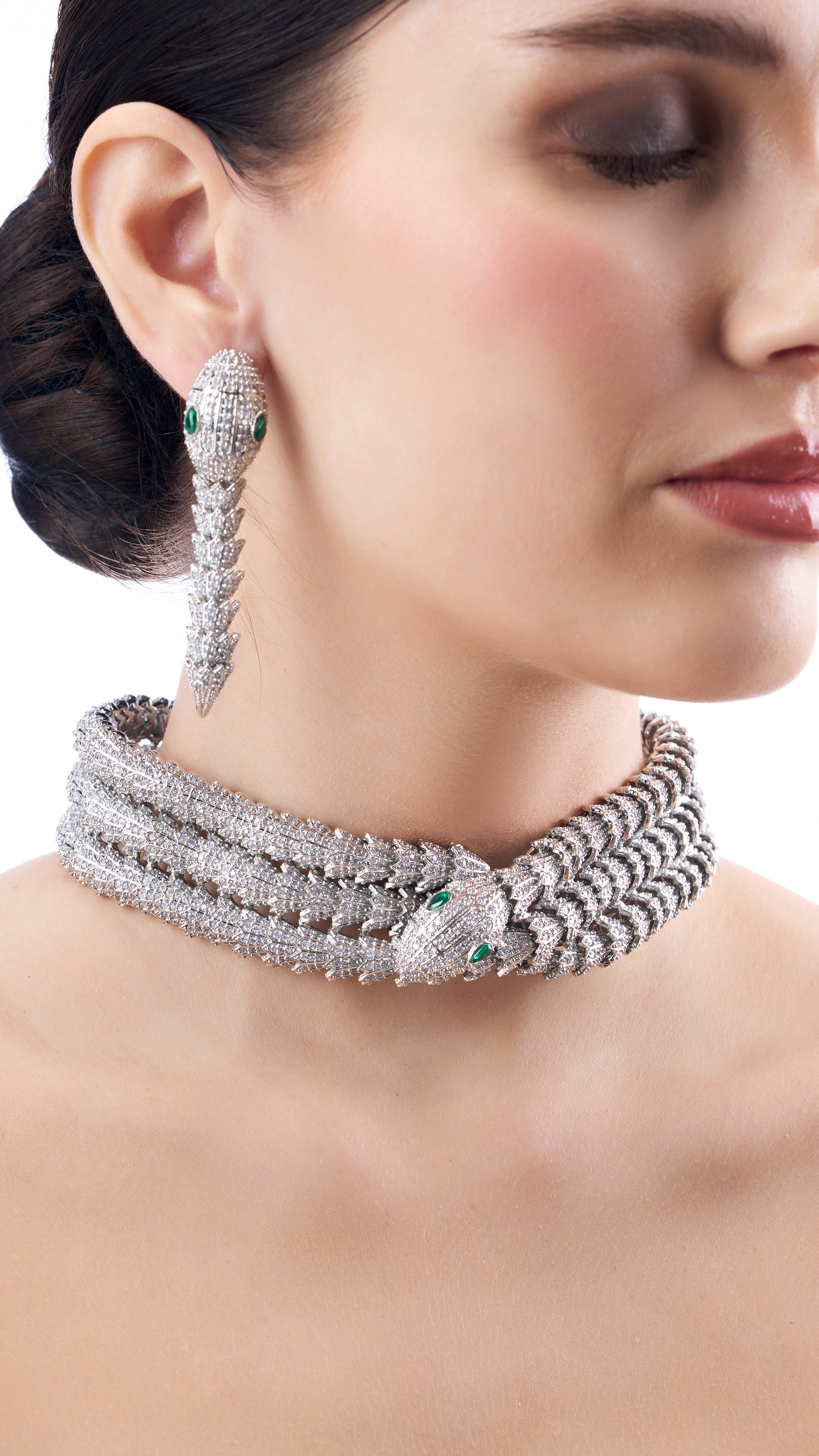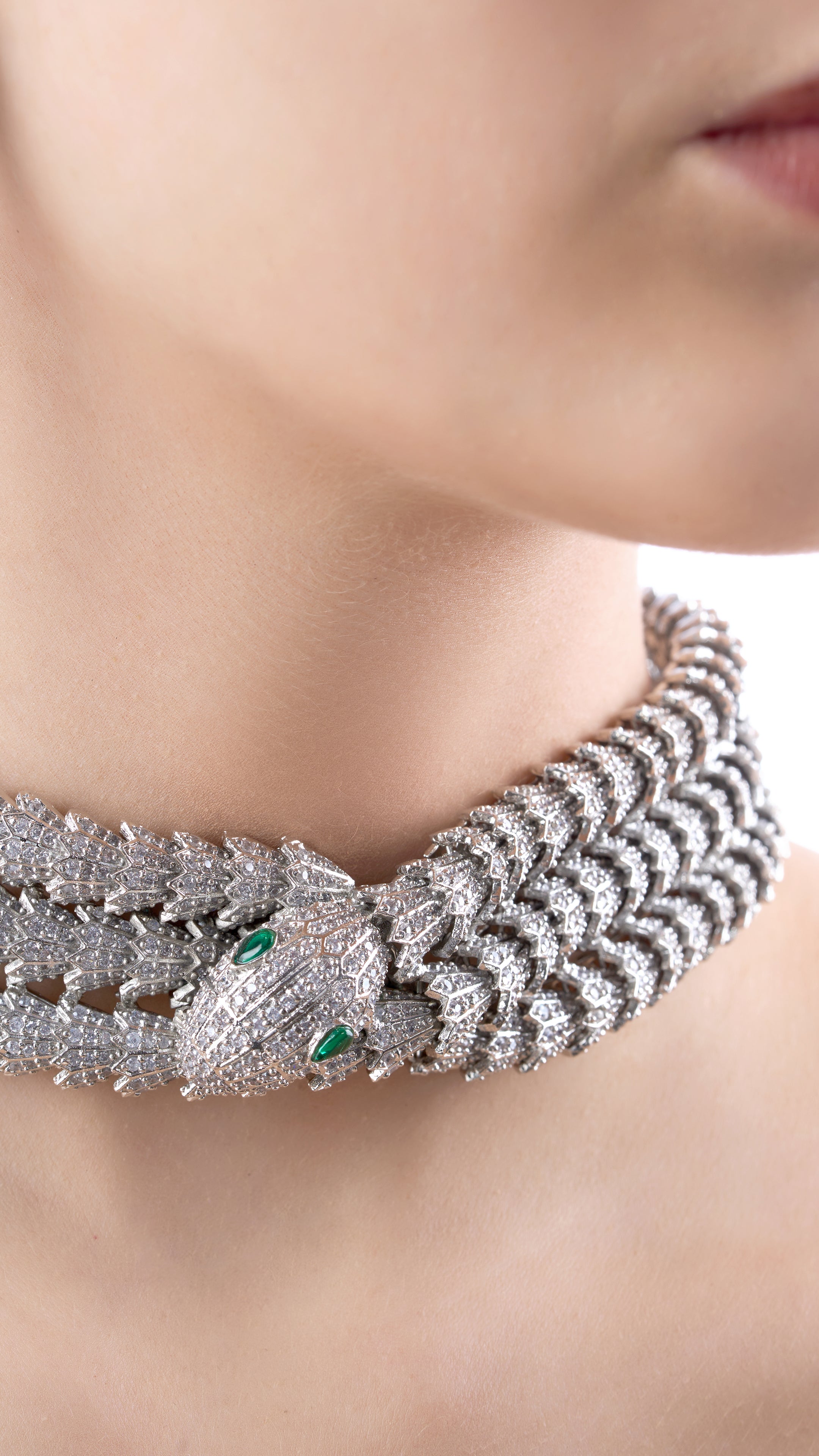 Triple-layer choker features sparkling Mossanites, arranged in a sleek, modern design. Its dazzling brilliance and layered structure add a touch of glamour, making it an ideal accessory for any special occasion.