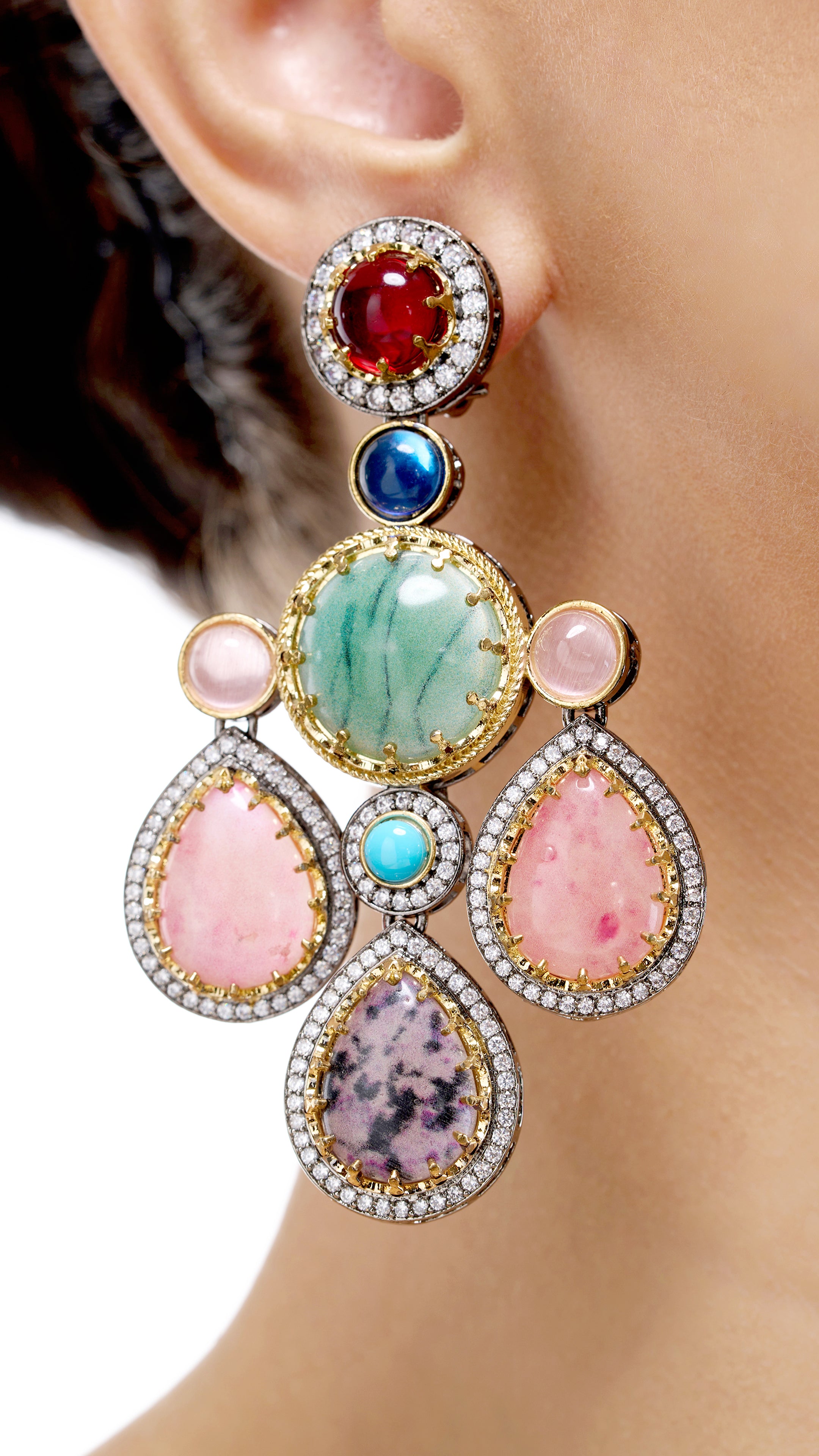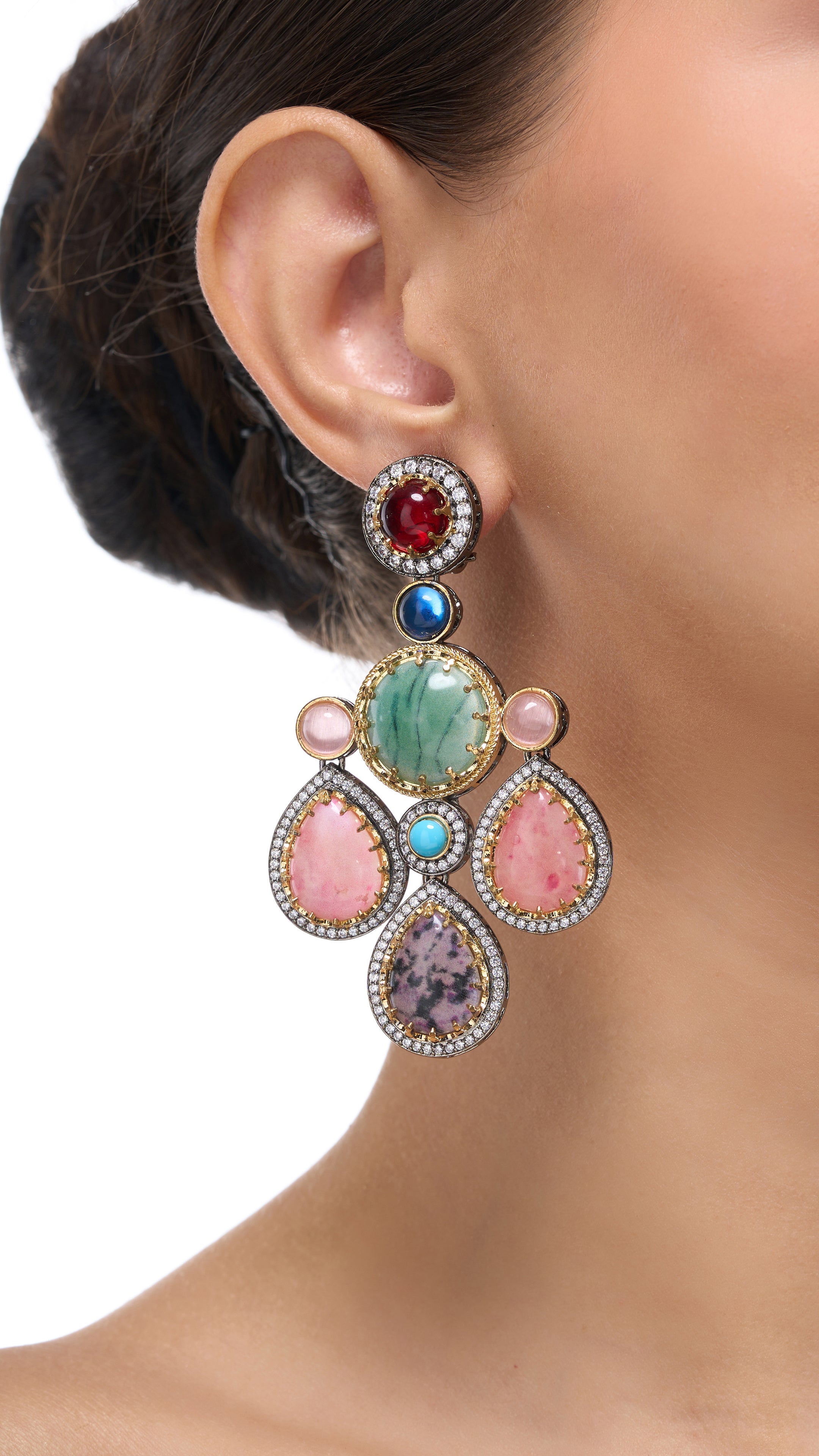 Discover elegance with a pop of color in our Victorian Pure Stone Earrings. The multi-colored stones set in an ornate Victorian design bring a vibrant touch to classic style. Ideal for adding a unique and refined touch to any outfit or event.