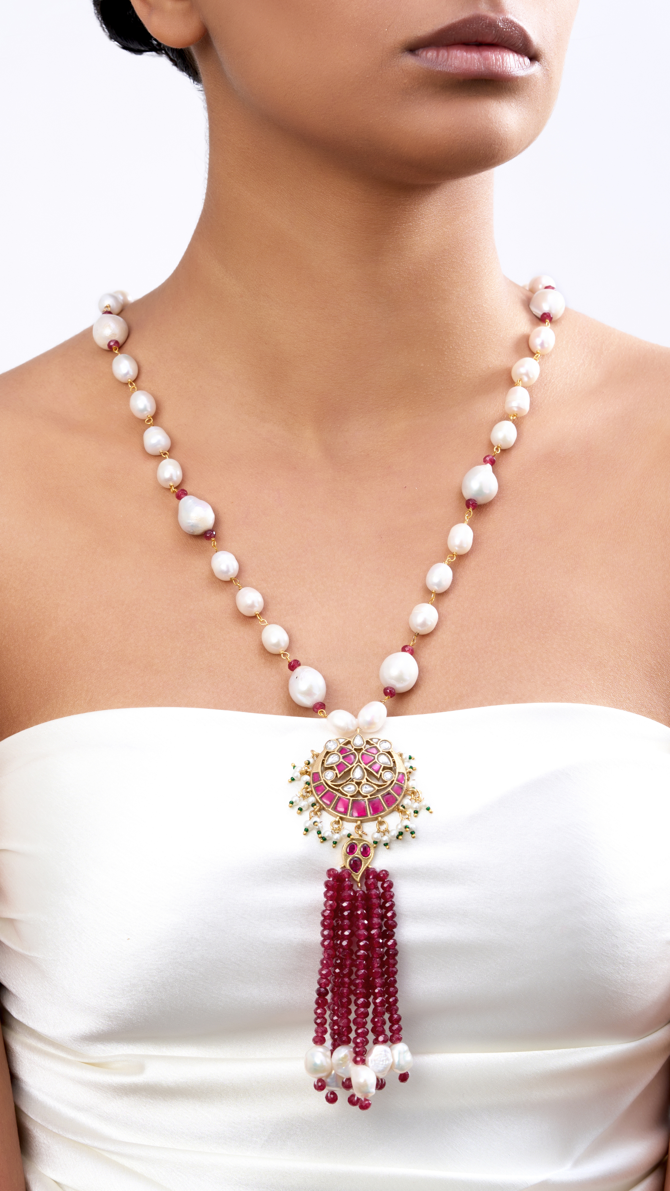 This exquisite necklace exudes sophistication and charm, elevating any ensemble with its luxurious presence. Crafted with meticulous attention to detail, it embodies the perfect blend of glamour and charm. Wrap yourself in elegance and make a statement with every graceful drape.