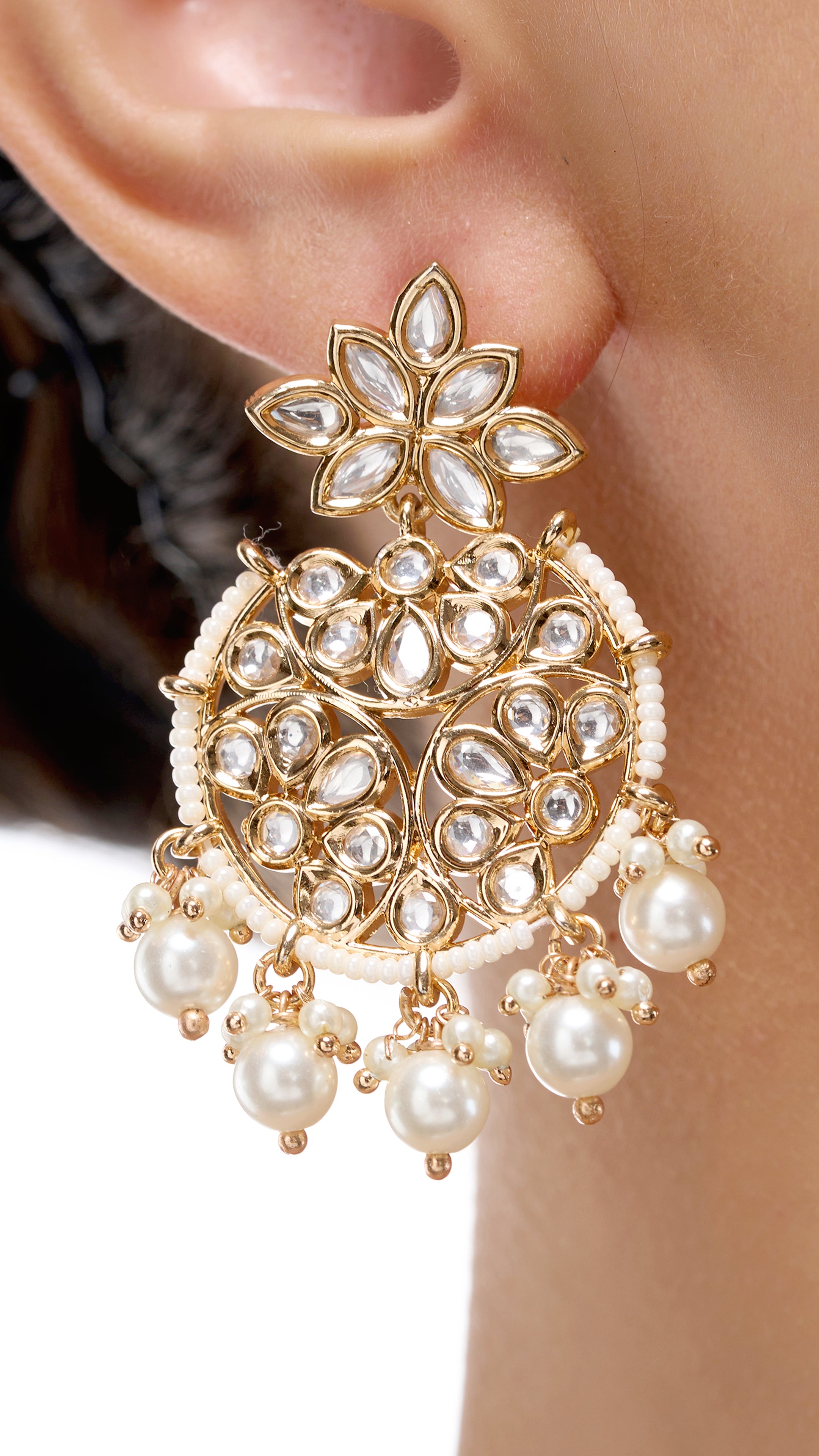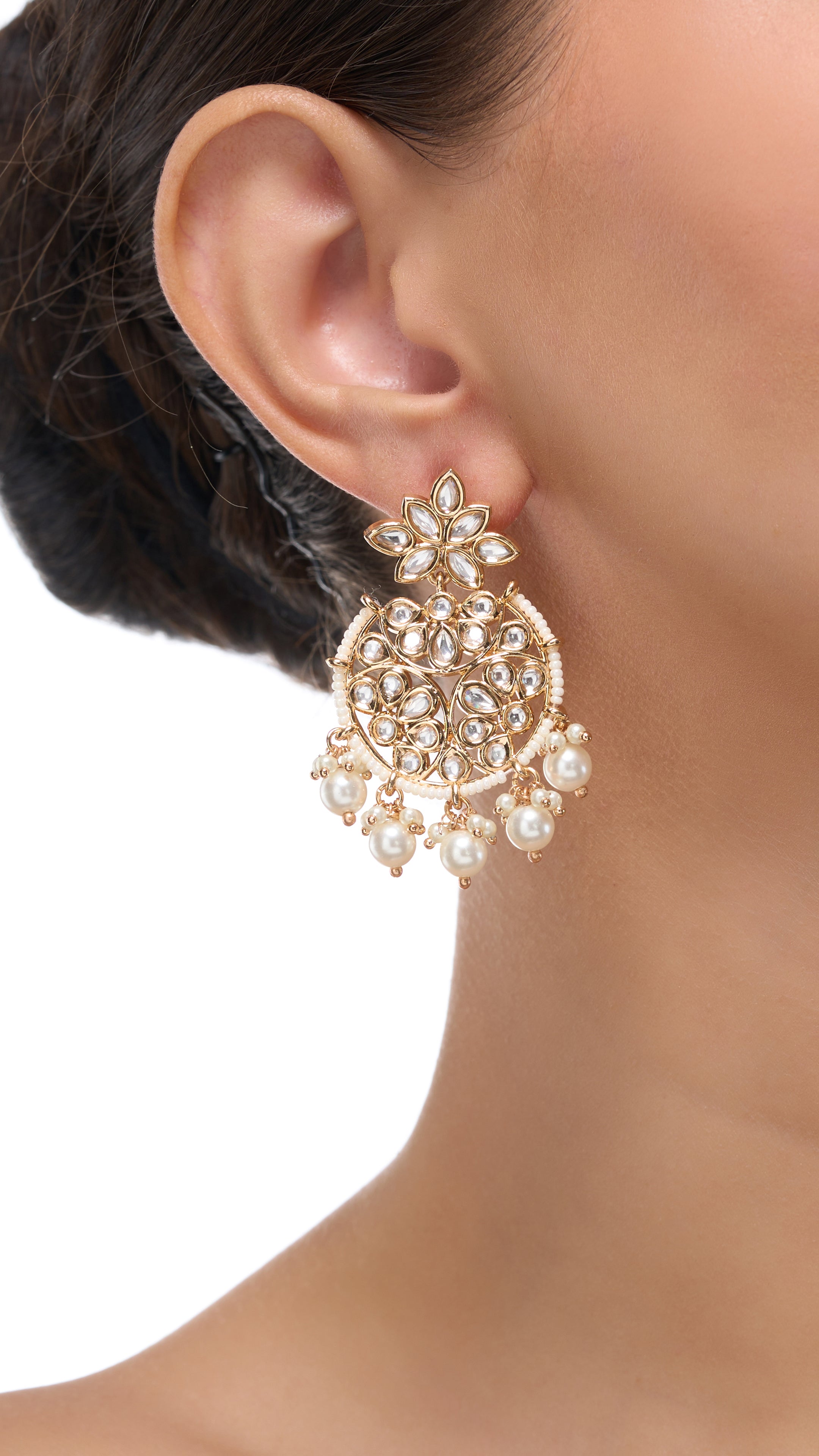 Experience the elegance of the Bikaneri Kundan Chand Bali. This traditional piece showcases intricate Kundan craftsmanship and a graceful Chand Bali design, blending rich heritage with detailed artistry. Its opulent style adds a touch of regal charm to any ensemble