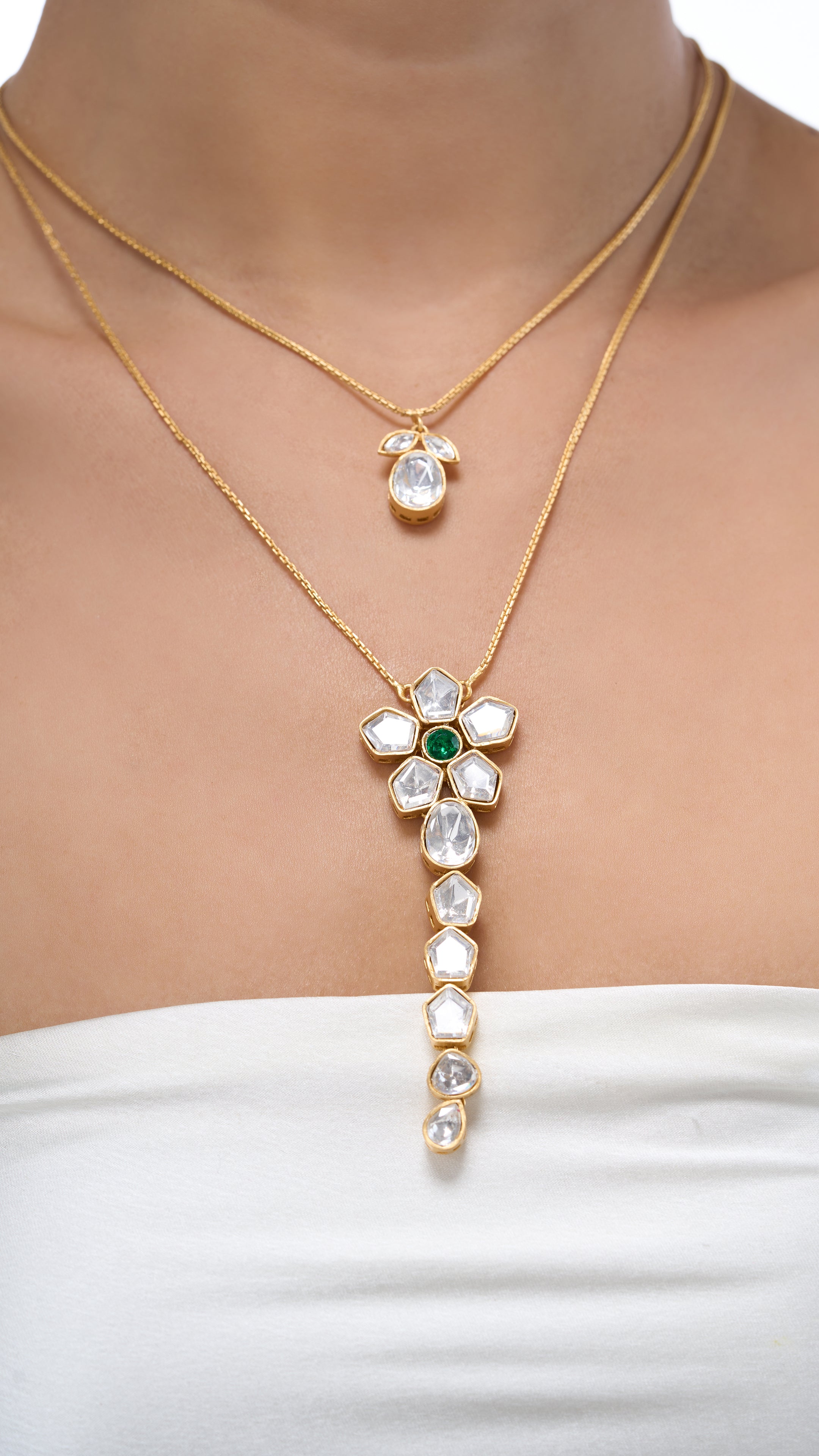 Charulata double layered flower kundan necklace set