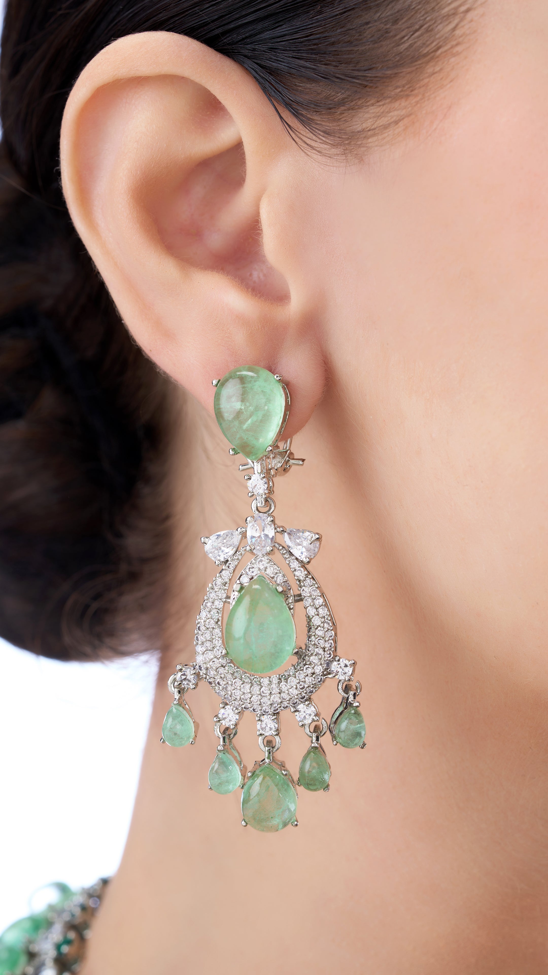 Chitrani double layer necklace set with mossainite and semi precious stones in aqua