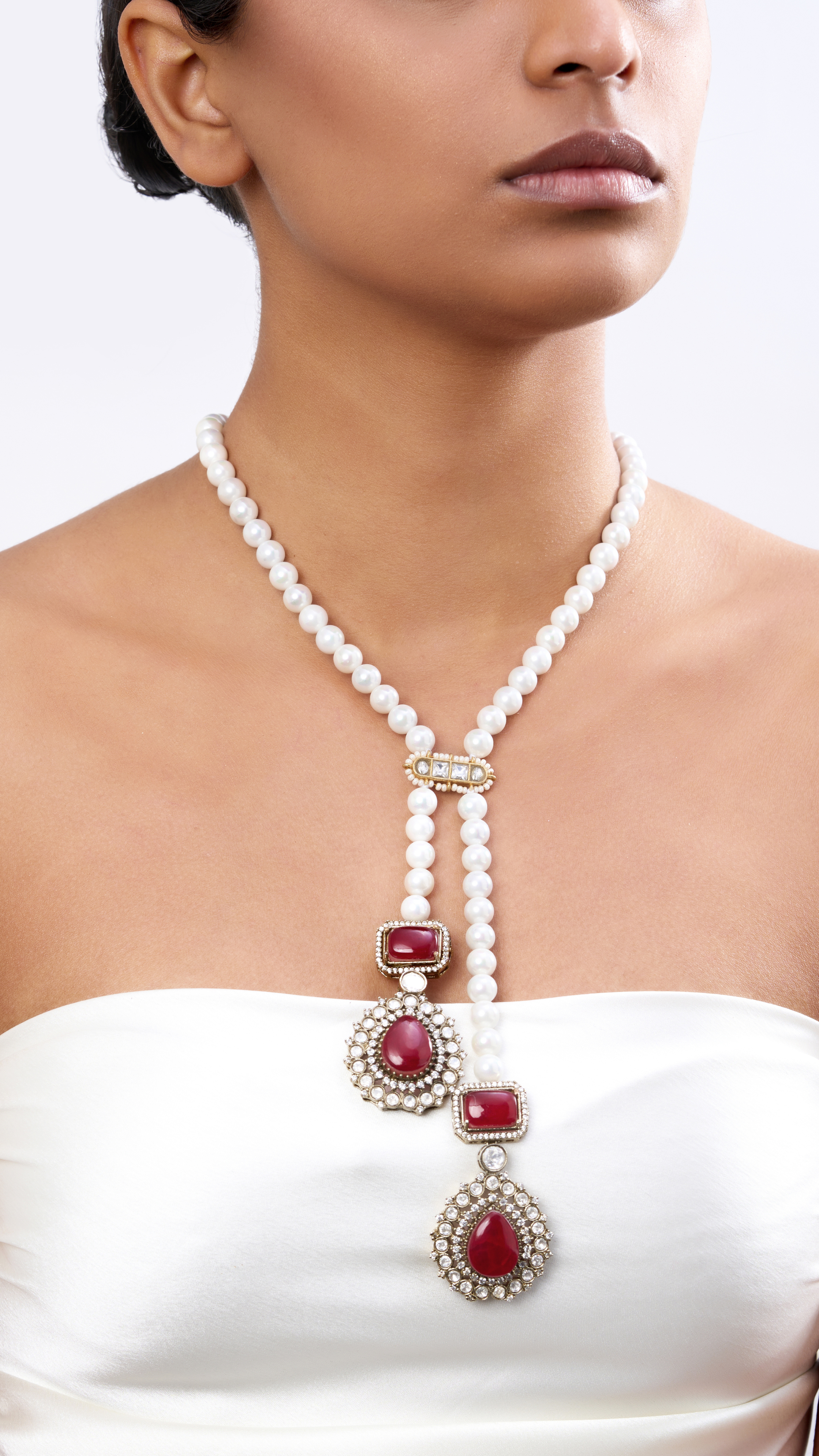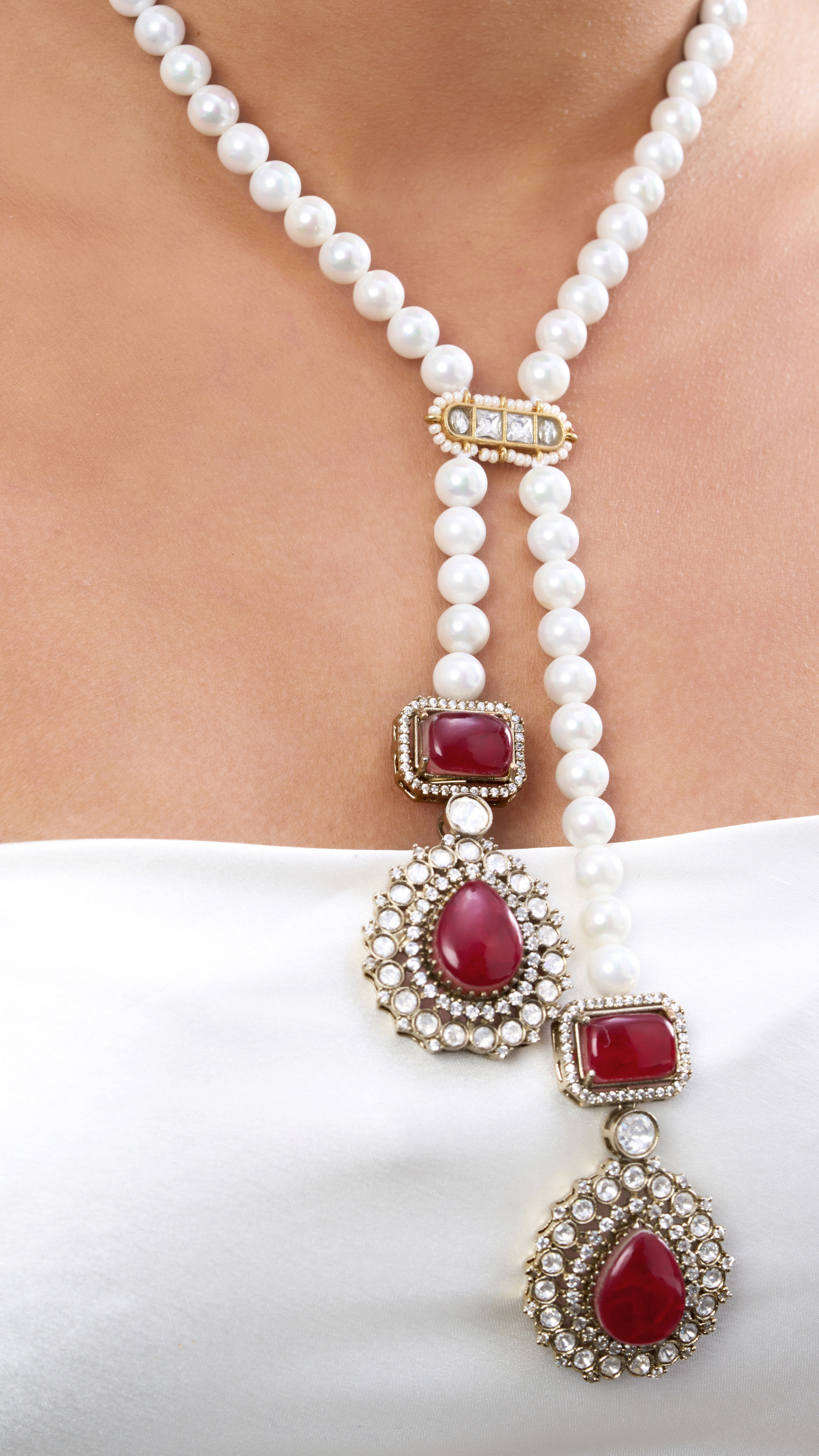 Elevate your attire with our Moissanite Victorian Ruby and Pearl Scarf, exuding a touch of glamour and elegance. Meticulously crafted, this scarf combines the allure of Victorian-inspired design with the brilliance of mossanite, rubies, and pearls. Wrap yourself in luxury and sophistication, radiating timeless charm with every graceful drape.