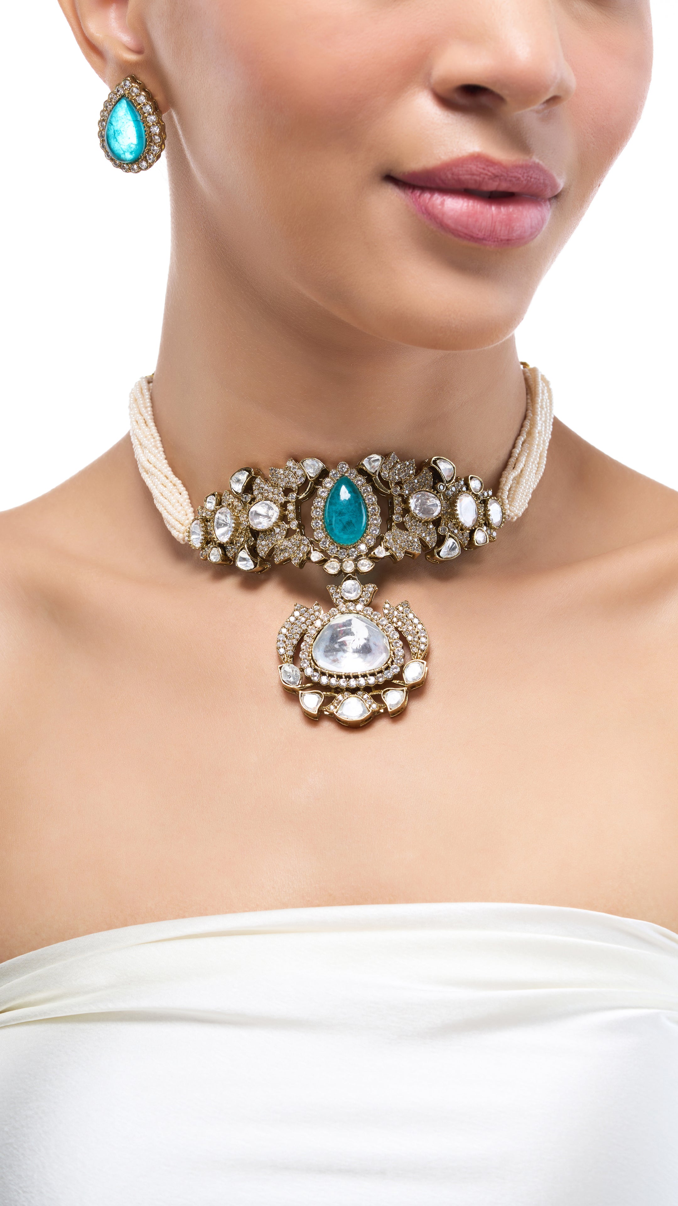 Elegant Victorian Moissanite jewelry featuring radiant aquamarine stones, combining vintage charm with modern sparkle for timeless sophistication