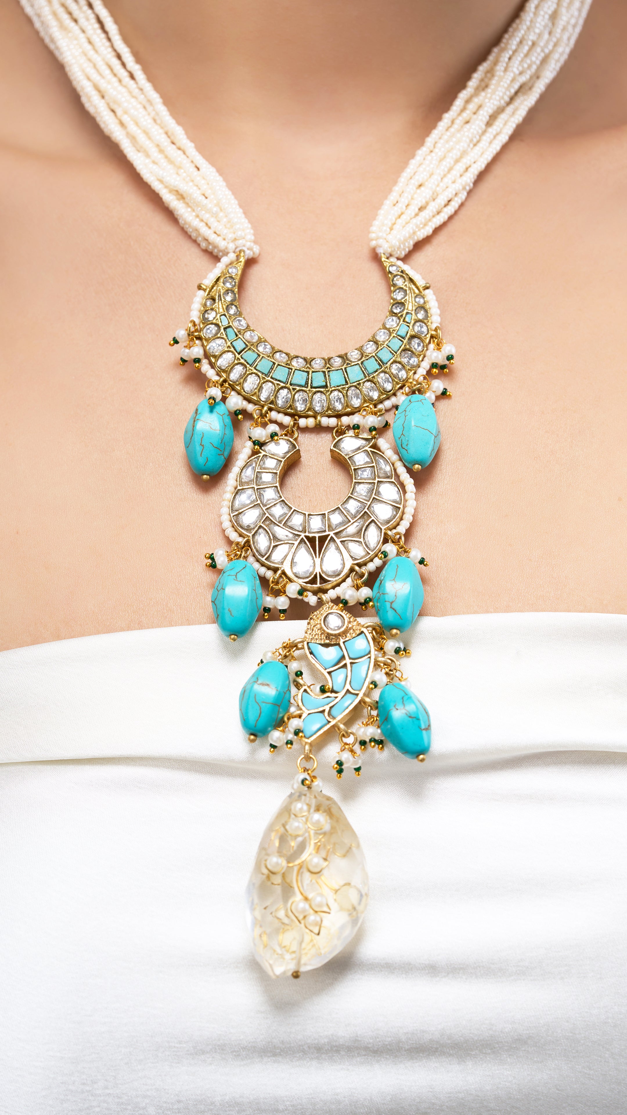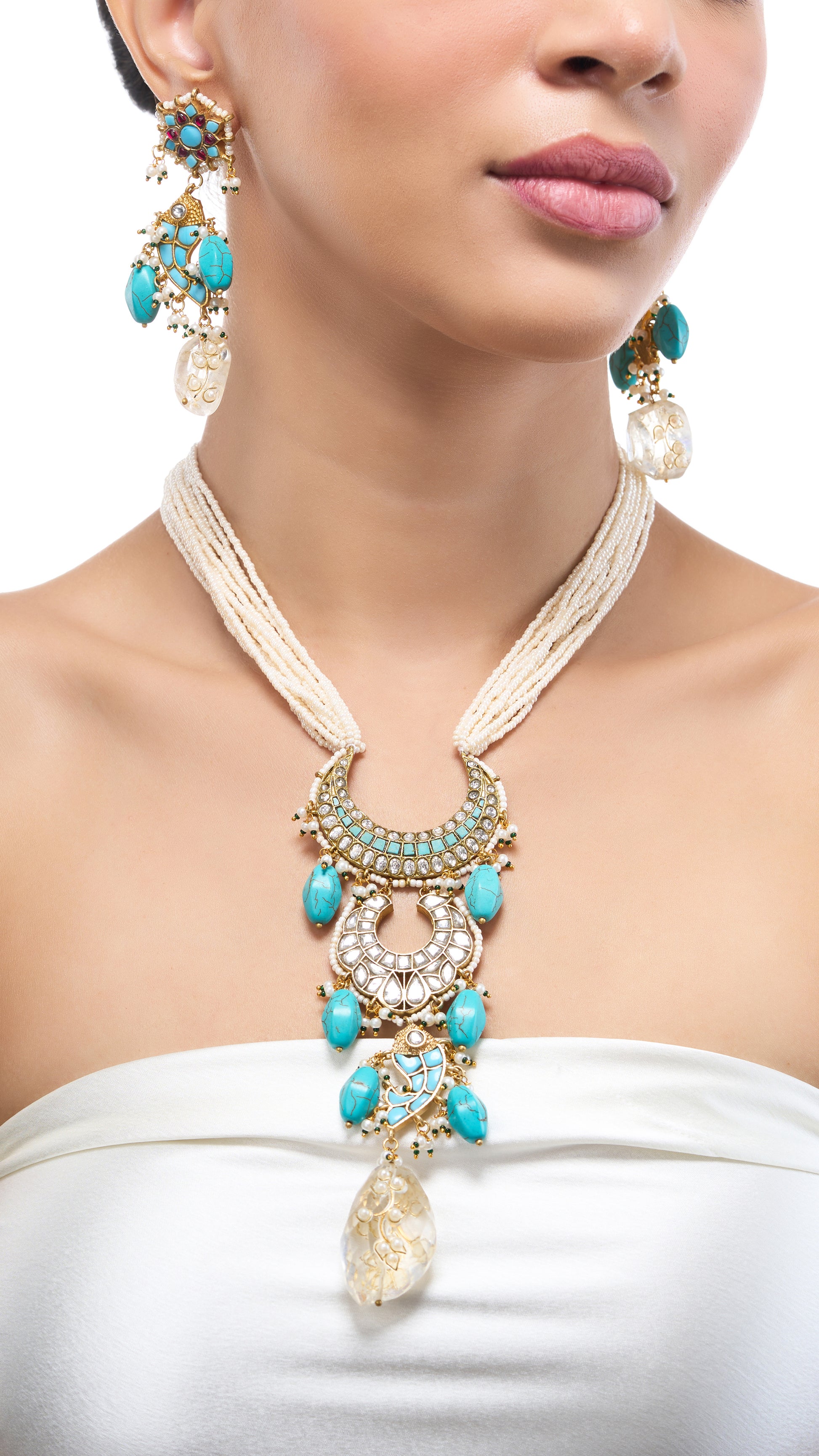 Kadamba gold foil with enamel & pure quartz and semi precious stones