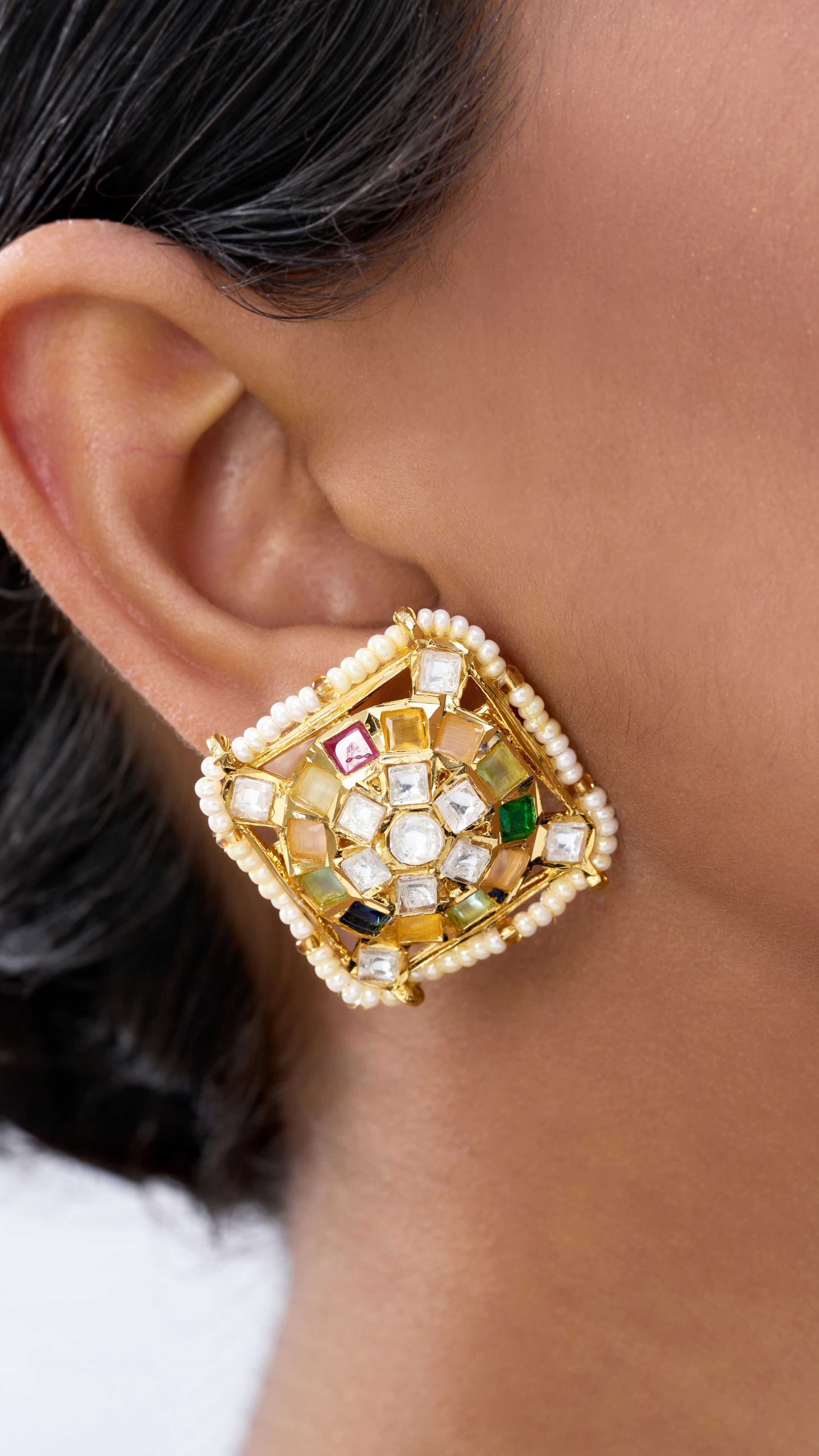 Step into the enchanting world of Prismatic Kundan Ensemble, where traditional craftsmanship meets contemporary allure. Each piece is a symphony of vibrant colors and intricate Kundan work, capturing the essence of heritage with a modern twist. Adorn yourself with this radiant collection and illuminate every occasion with its timeless elegance and charm.
