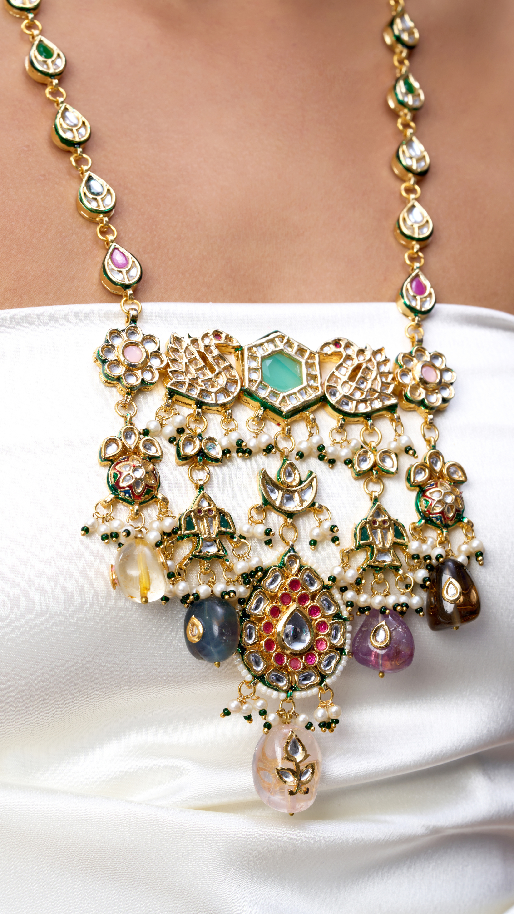 Experience the allure of Kundan & Pure Stones, a mesmerizing fusion of traditional elegance and contemporary charm. This exquisite jewelry combines the intricate craftsmanship of Kundan with the timeless beauty of pure stones, creating a captivating symphony of colors and textures. Each piece is meticulously crafted to showcase the lustrous Kundan settings adorned with vibrant pure stones, radiating opulence and sophistication