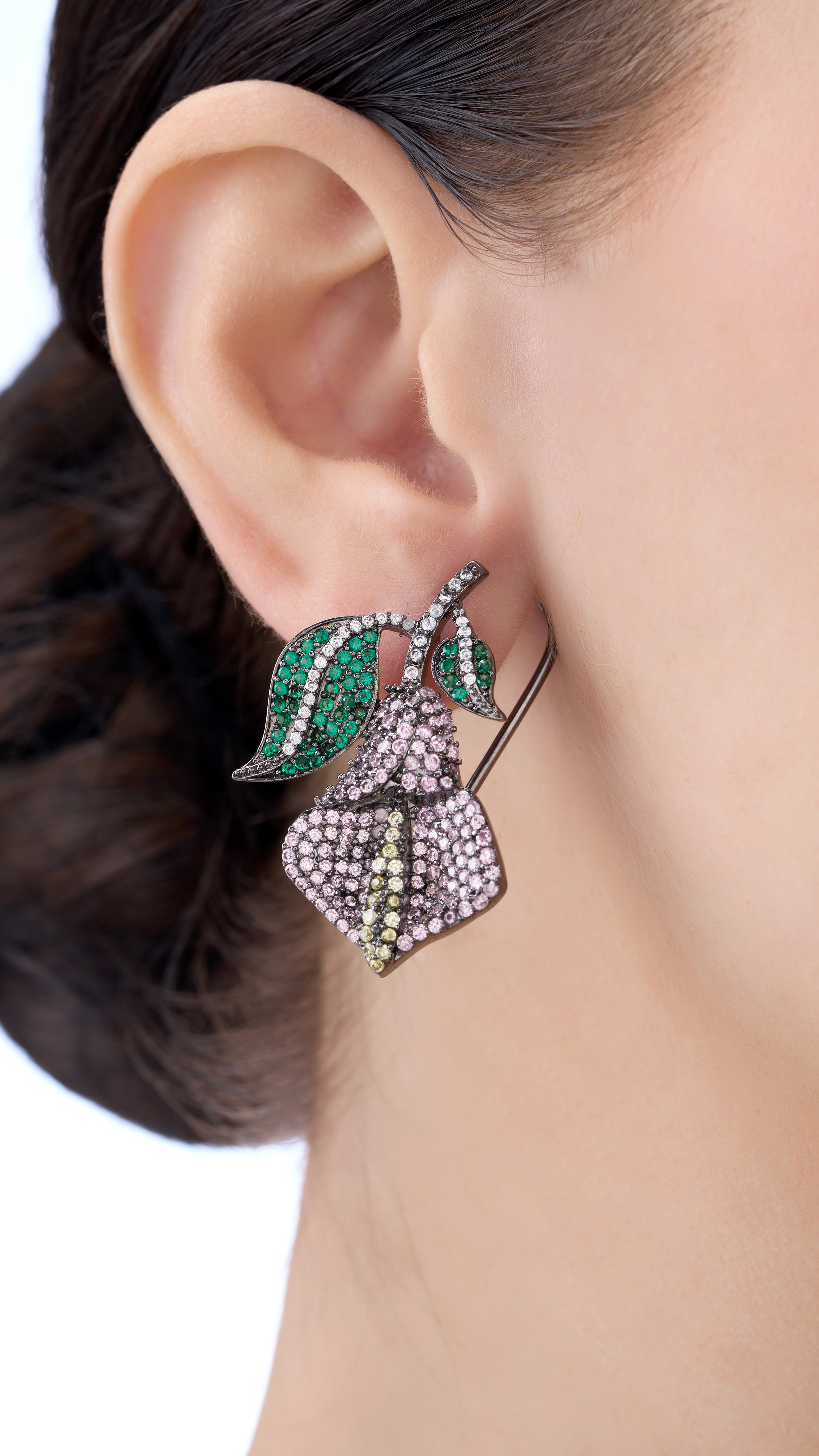 Stunning abstract crystal Victorian flower and leaf necklace set, featuring purple and green crystals, offering a perfect blend of intricate design and vibrant elegance.
