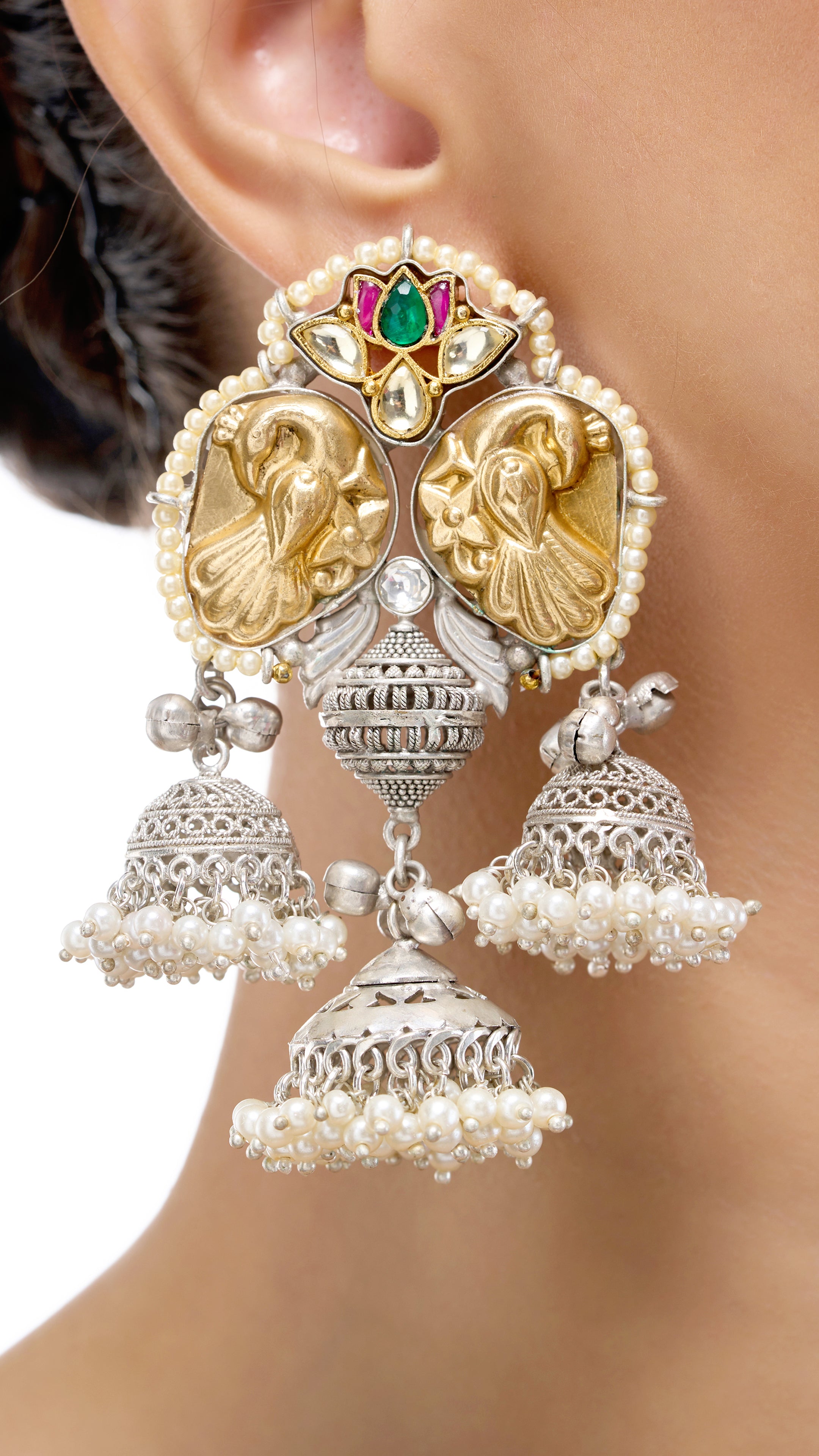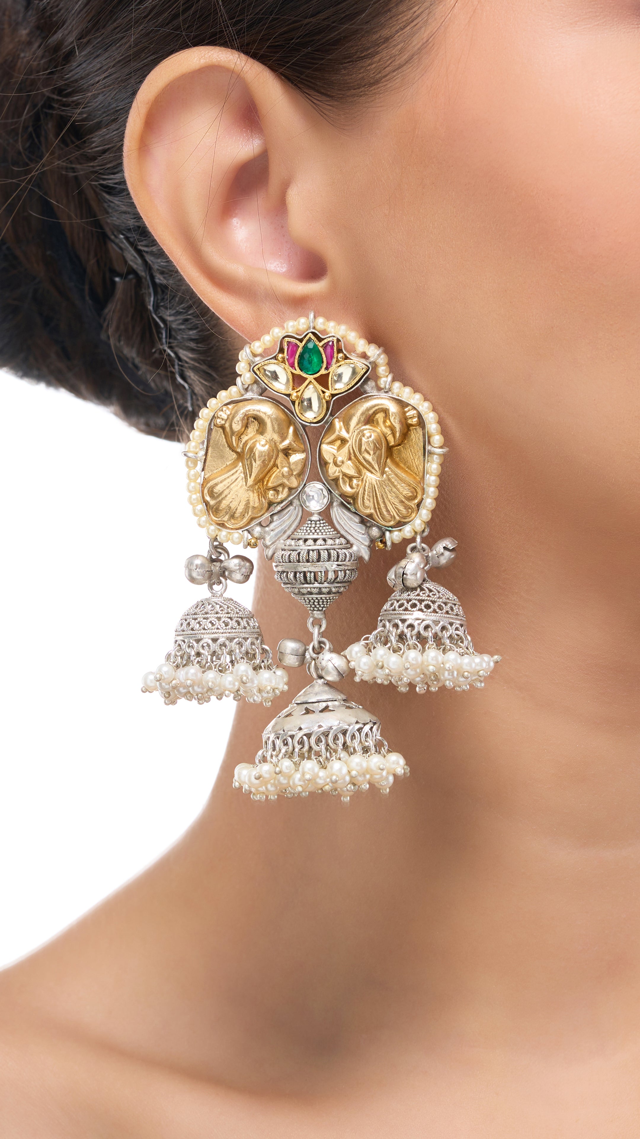 Stylish oxidized Kundan earrings featuring detailed filigree work, blending vintage charm with contemporary design for a sophisticated look.