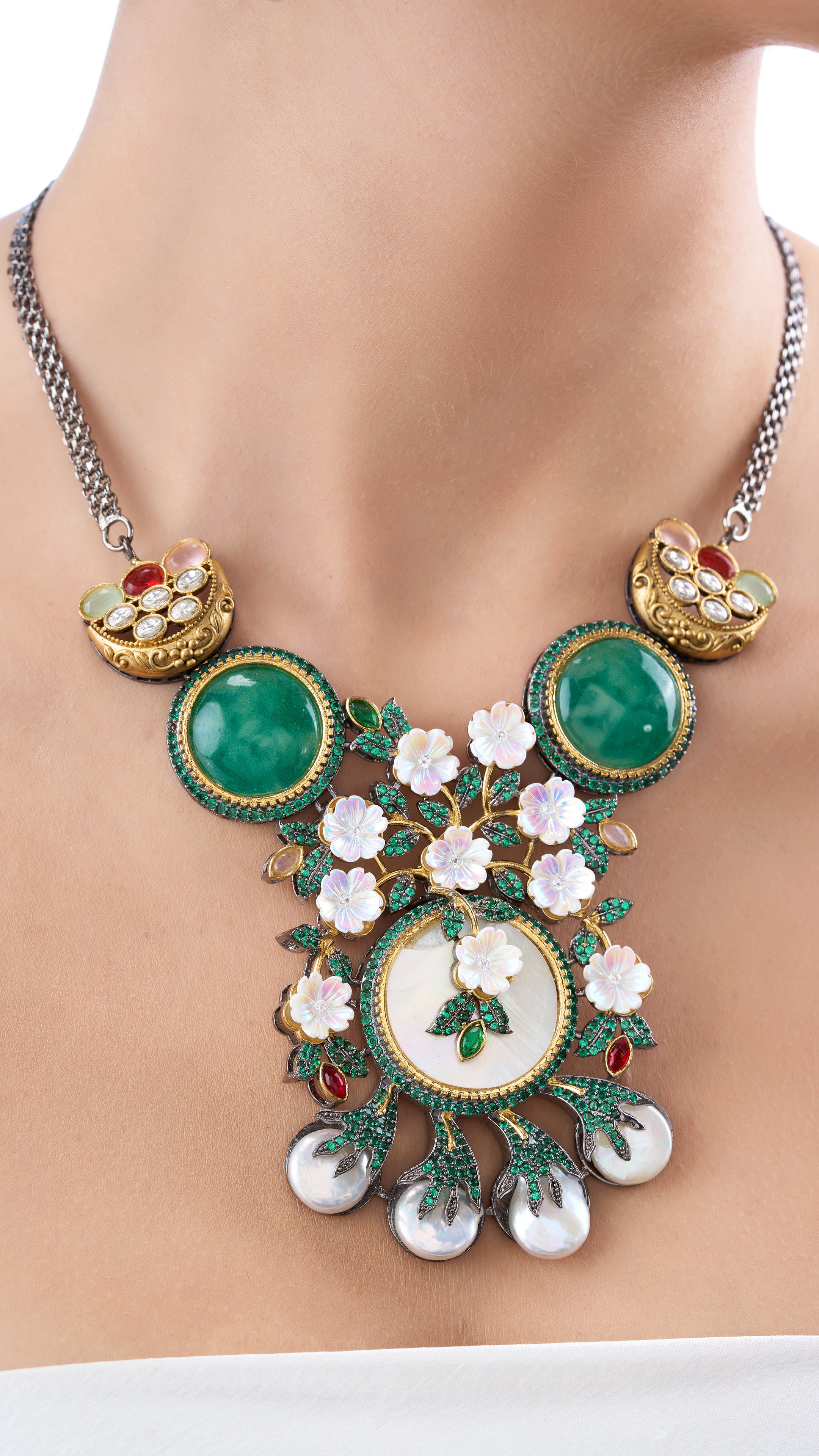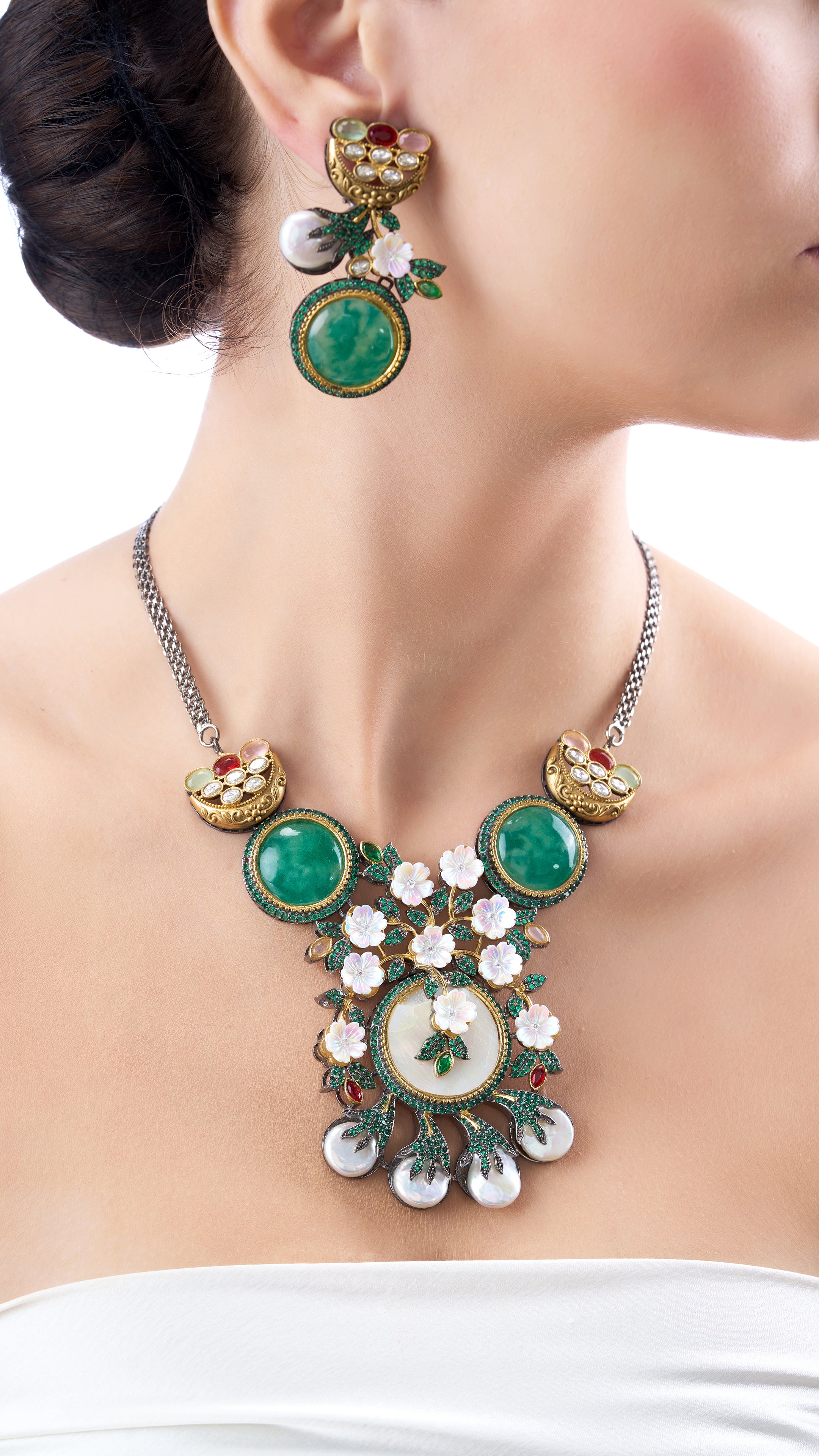 Pravira filigree necklace set with mother of pearl & semi precious stones