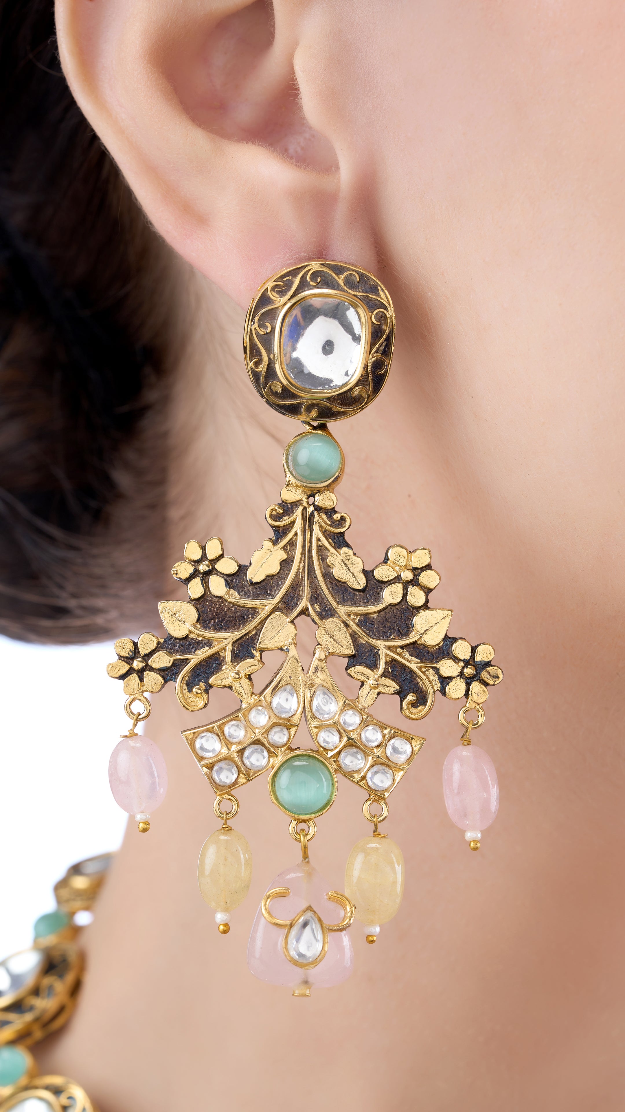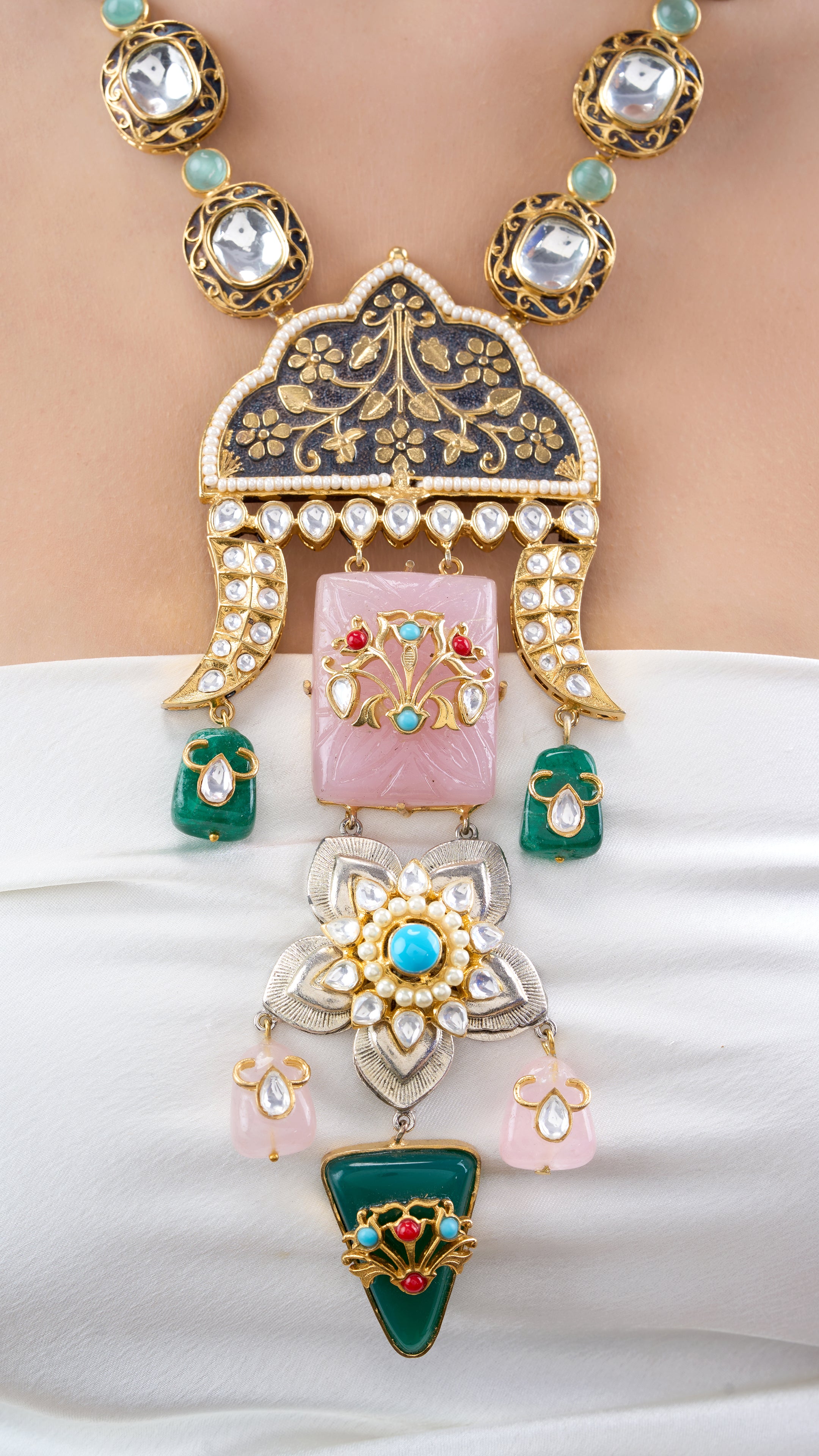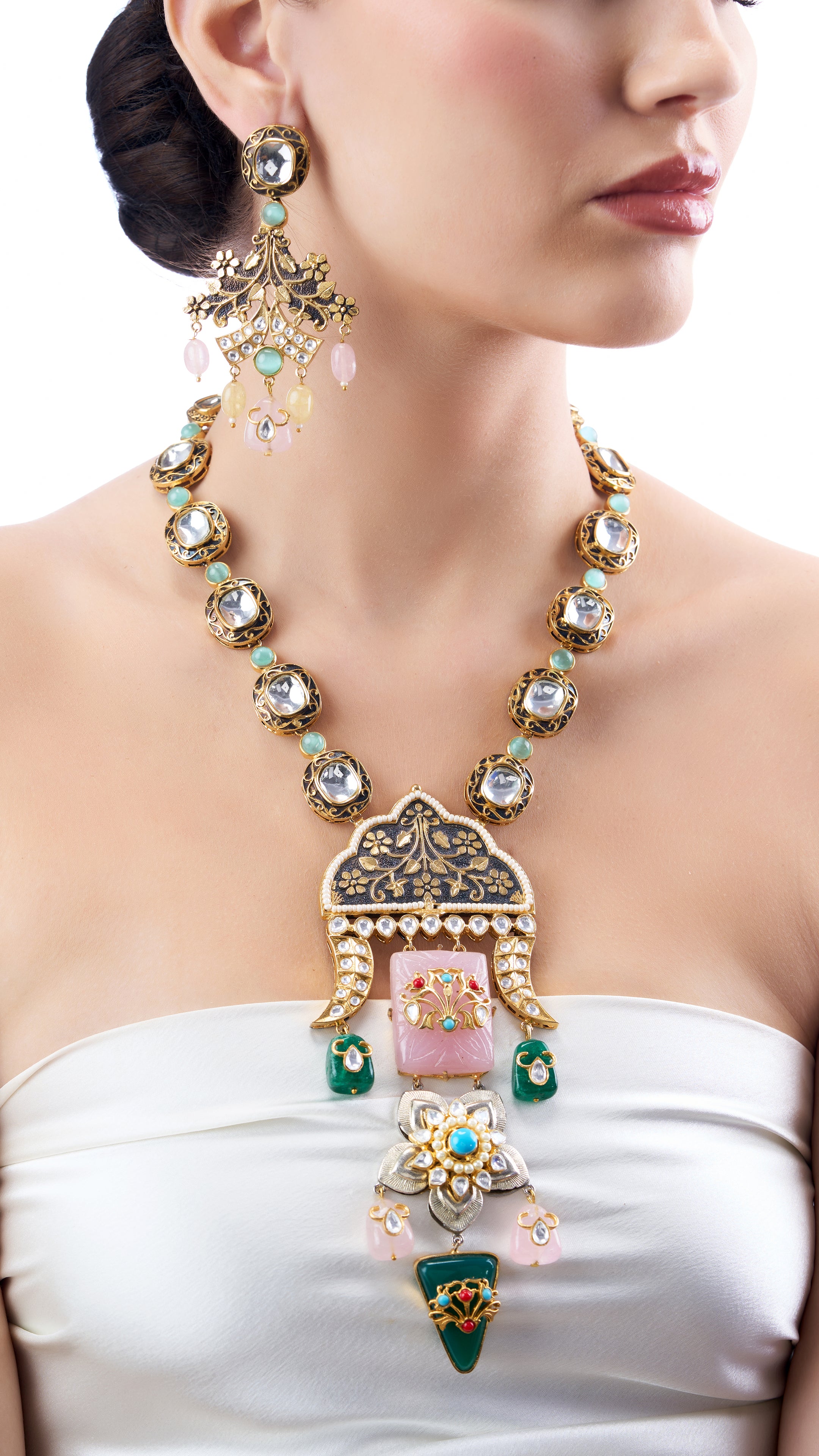 Prithvi statement mugal filigree necklace set with pure quartz and semi precious stones