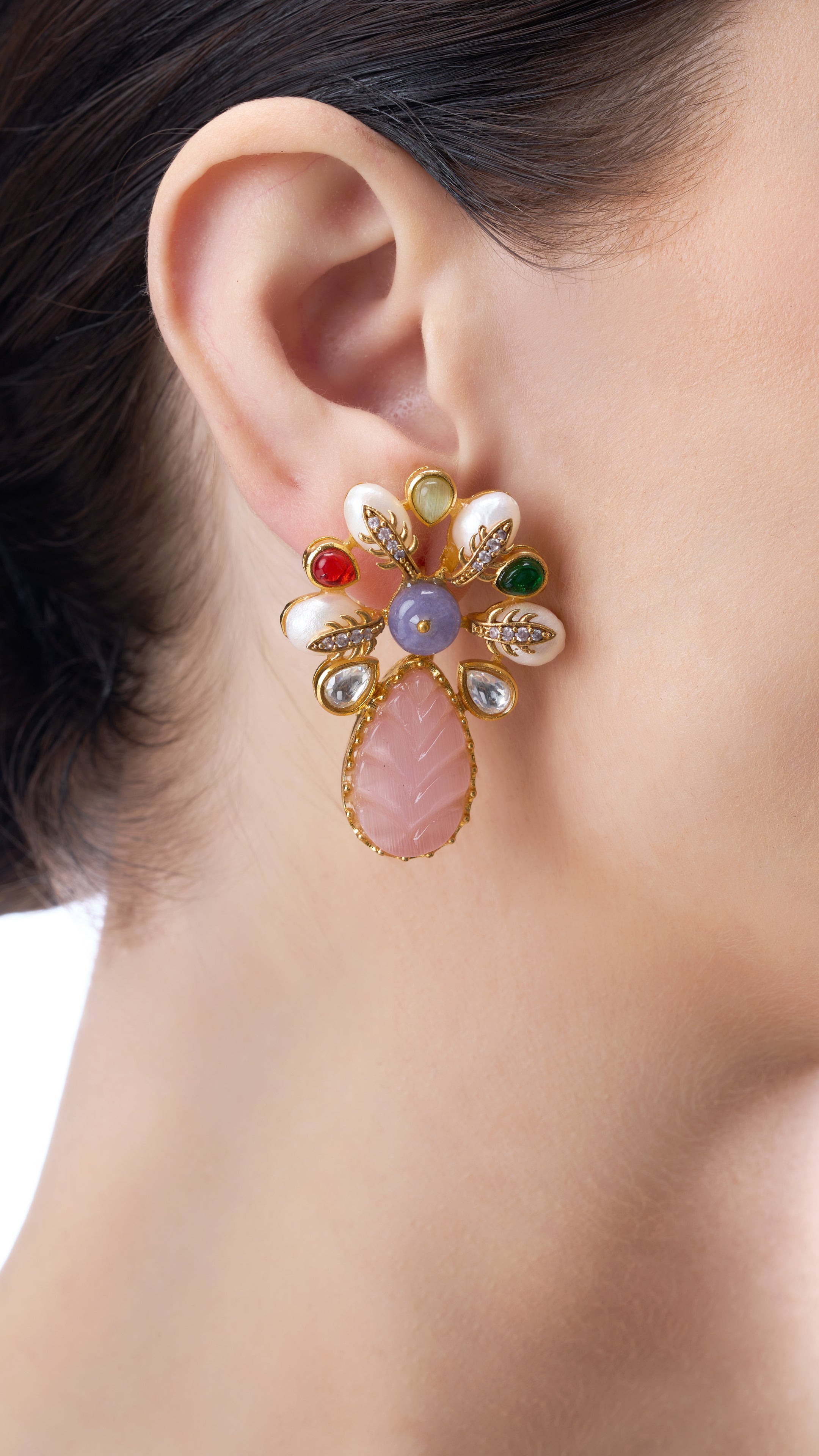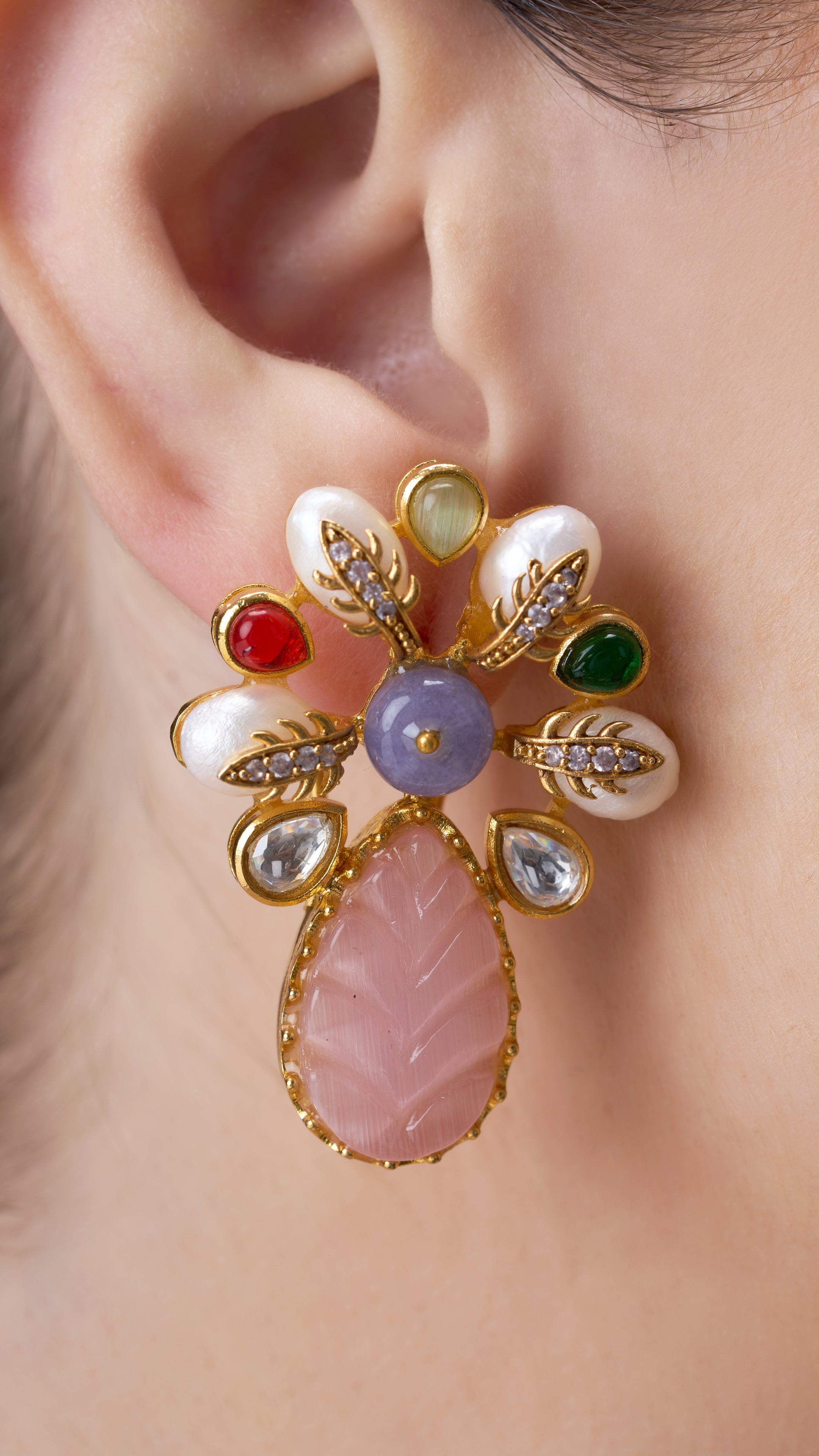Rohini baroque pearl earrings with semi precious monalisa stone in quartz