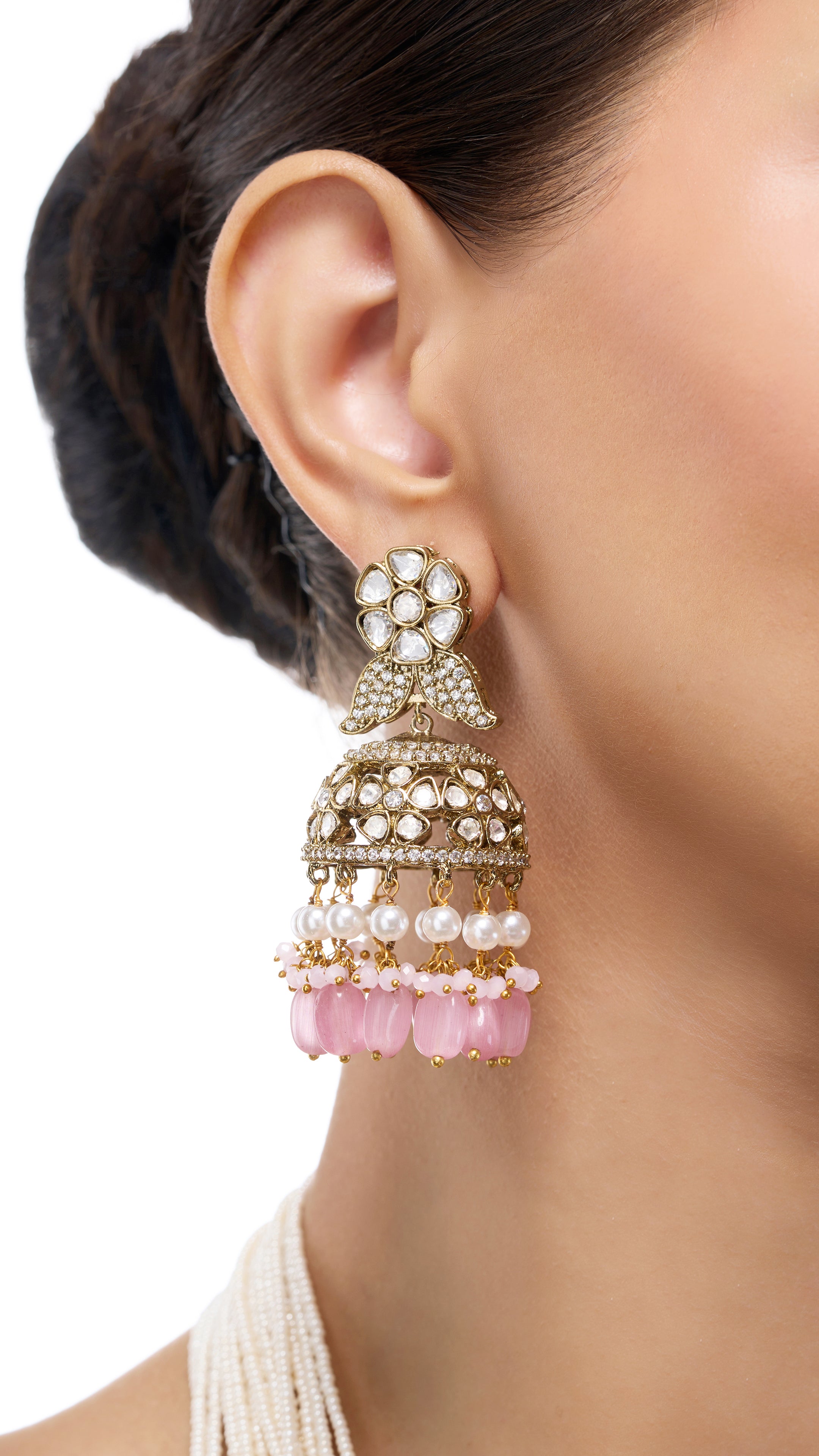 This exquisite Victorian necklace set features elegant pink hydro beads and lustrous pearls, perfect for adding a touch of vintage charm.