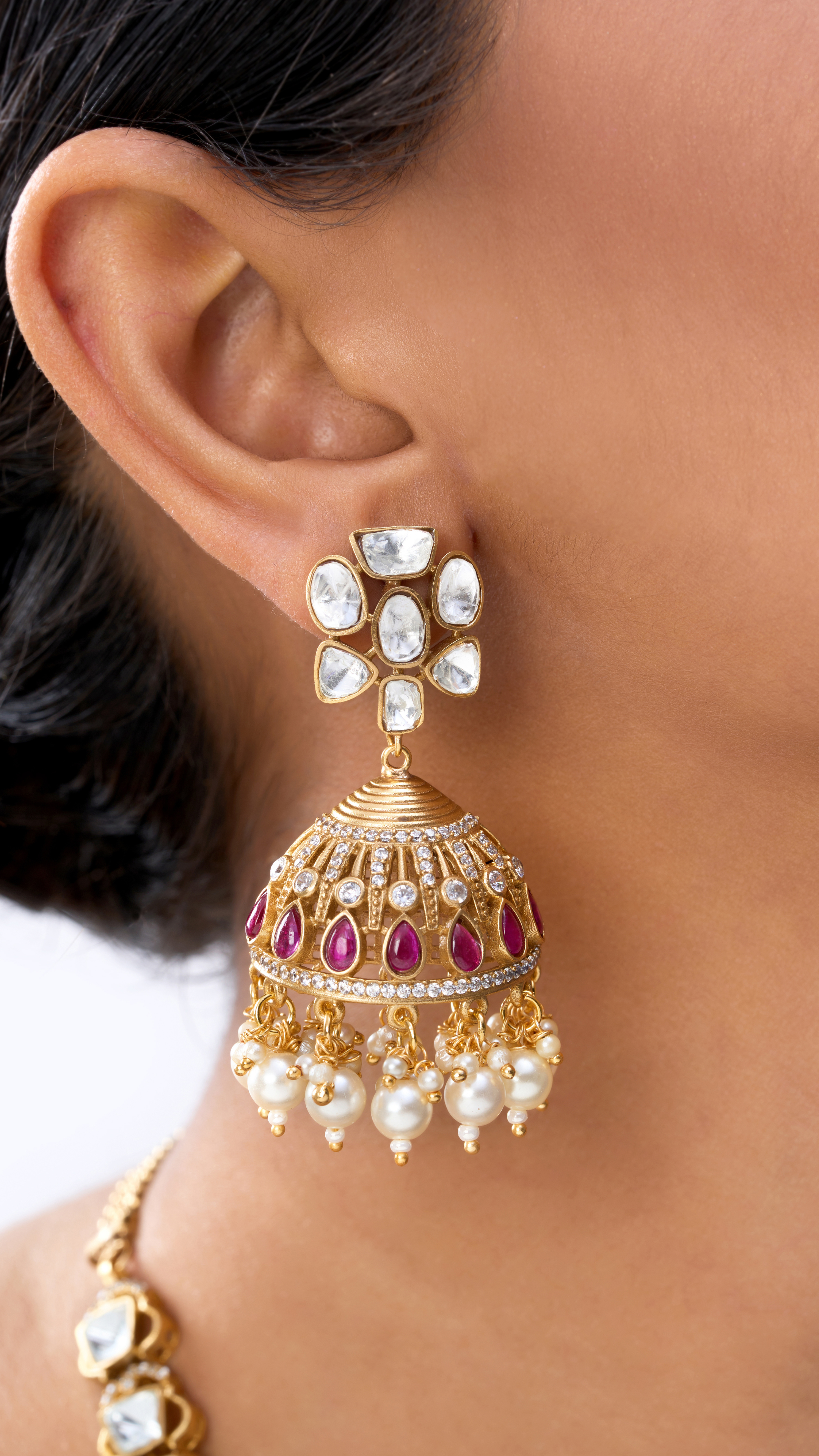 Introducing the Ruby Hasli Choker, a masterpiece of timeless elegance and allure. Crafted with precision, this choker features radiant rubies set in a traditional Hasli design. Each ruby exudes rich color and depth, captivating with its natural beauty. Meticulous craftsmanship is evident in every detail, from the intricate setting to the delicate finishing touches. Whether worn for a special occasion or to elevate everyday attire, this choker exudes sophistication and grace. Adorn your neckline with the Ruby Hasli Choker and make a statement of refined luxury. Embrace the enchanting allure of rubies and indulge in the timeless beauty of this exquisite piece.