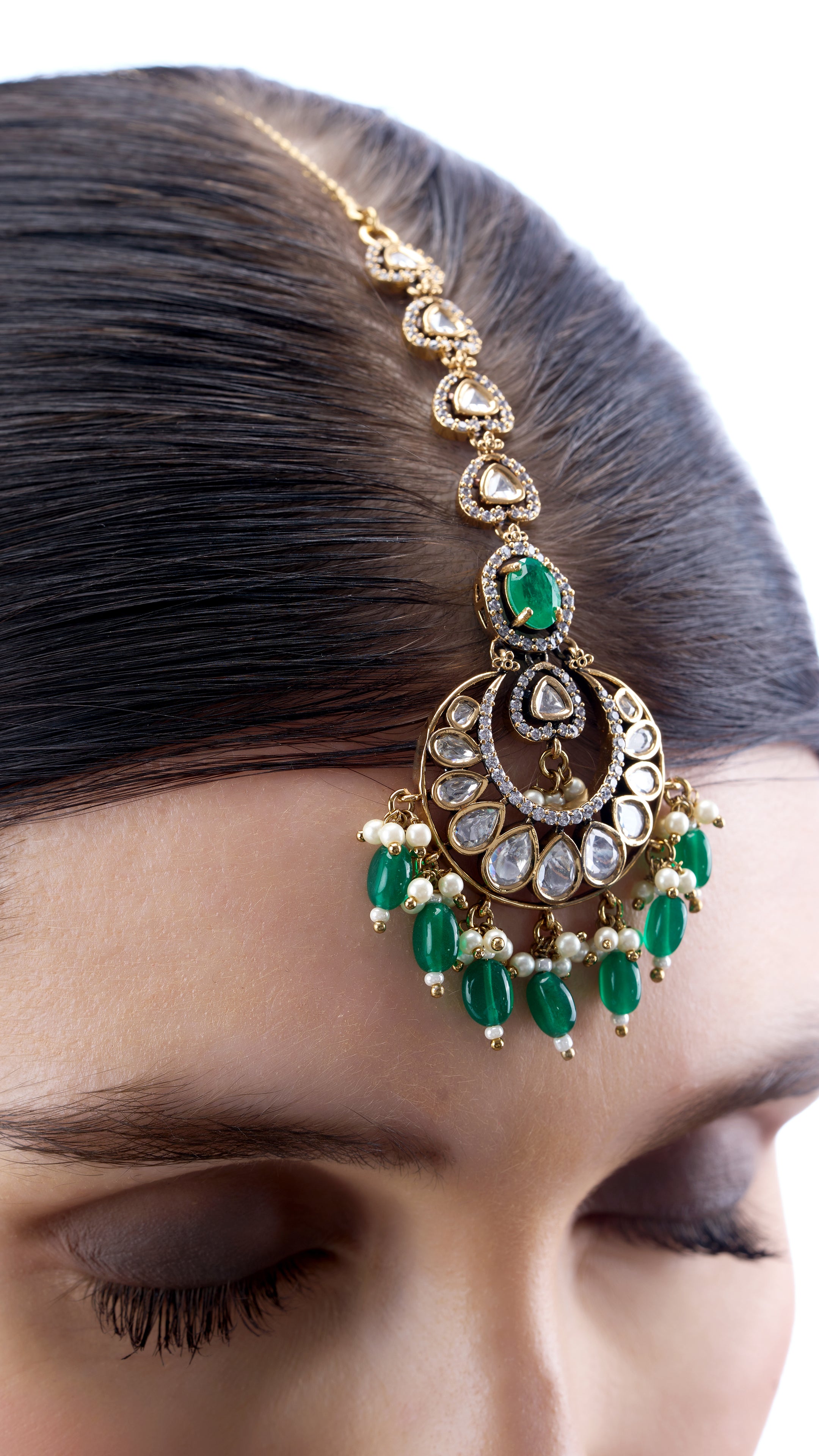 Victorian-inspired choker necklace set, featuring deep green semi-precious stones, captures the essence of old-world charm with a modern twist. Its intricate detailing and rich color make it a captivating statement piece for any elegant celebration.