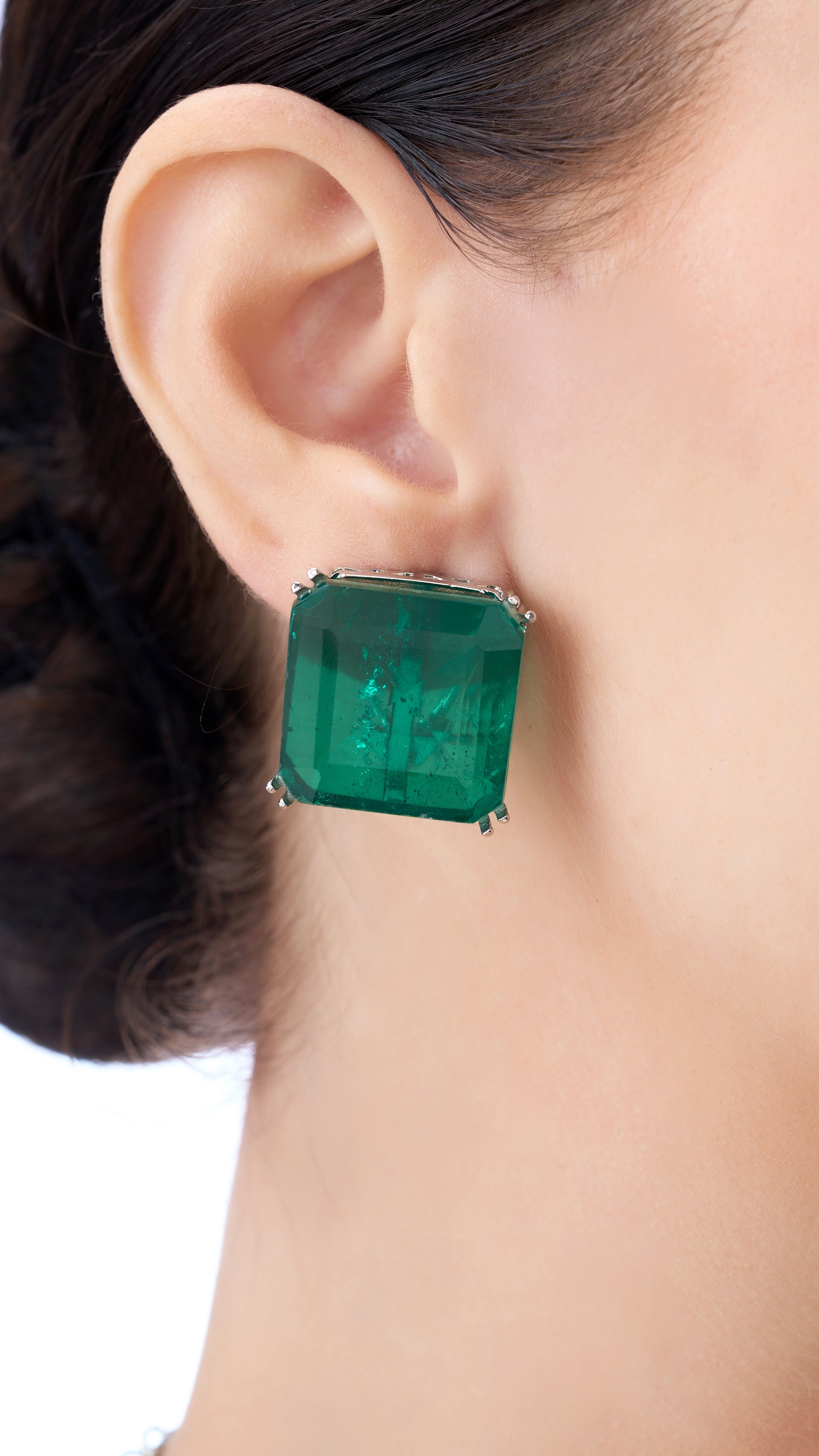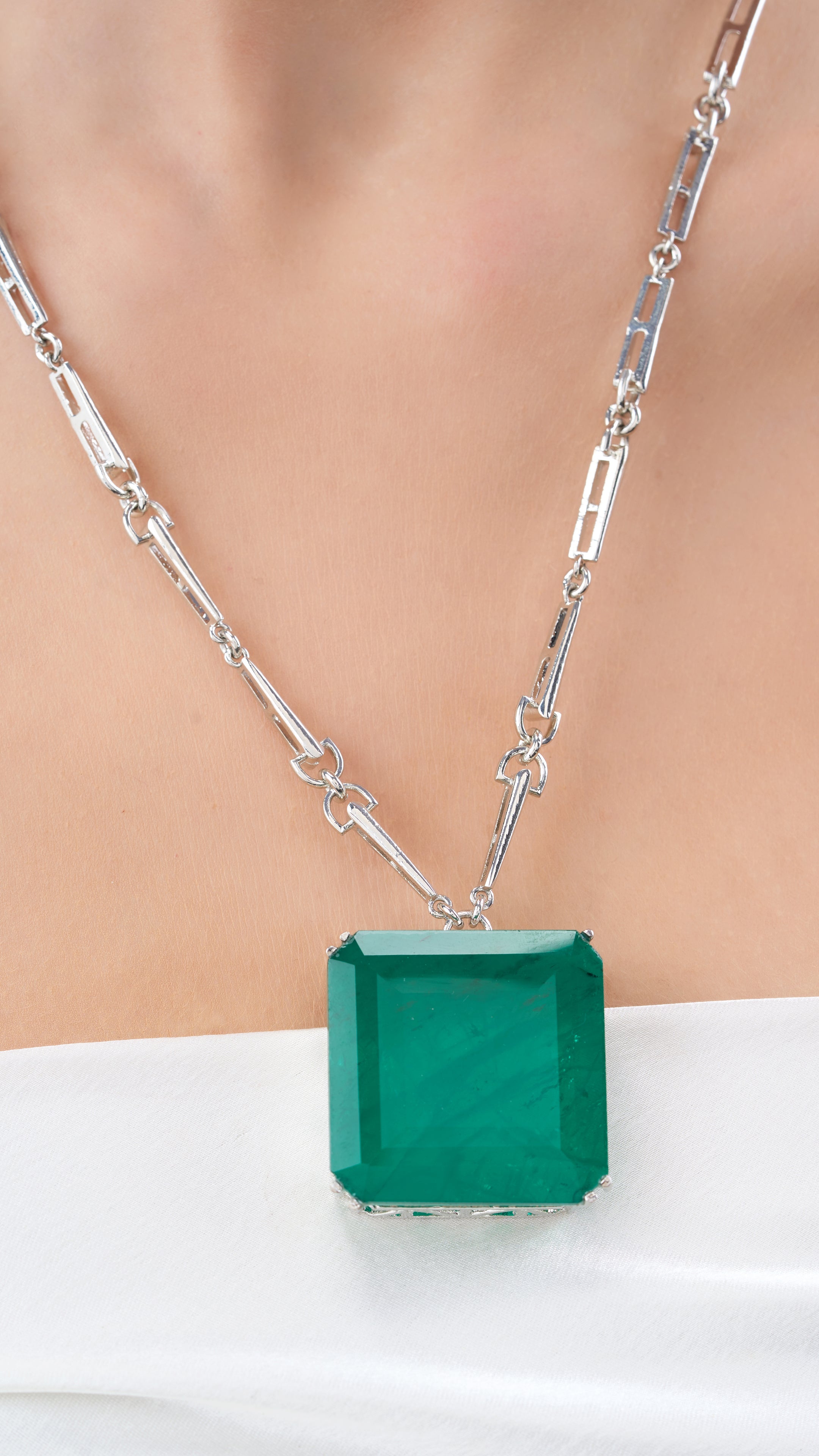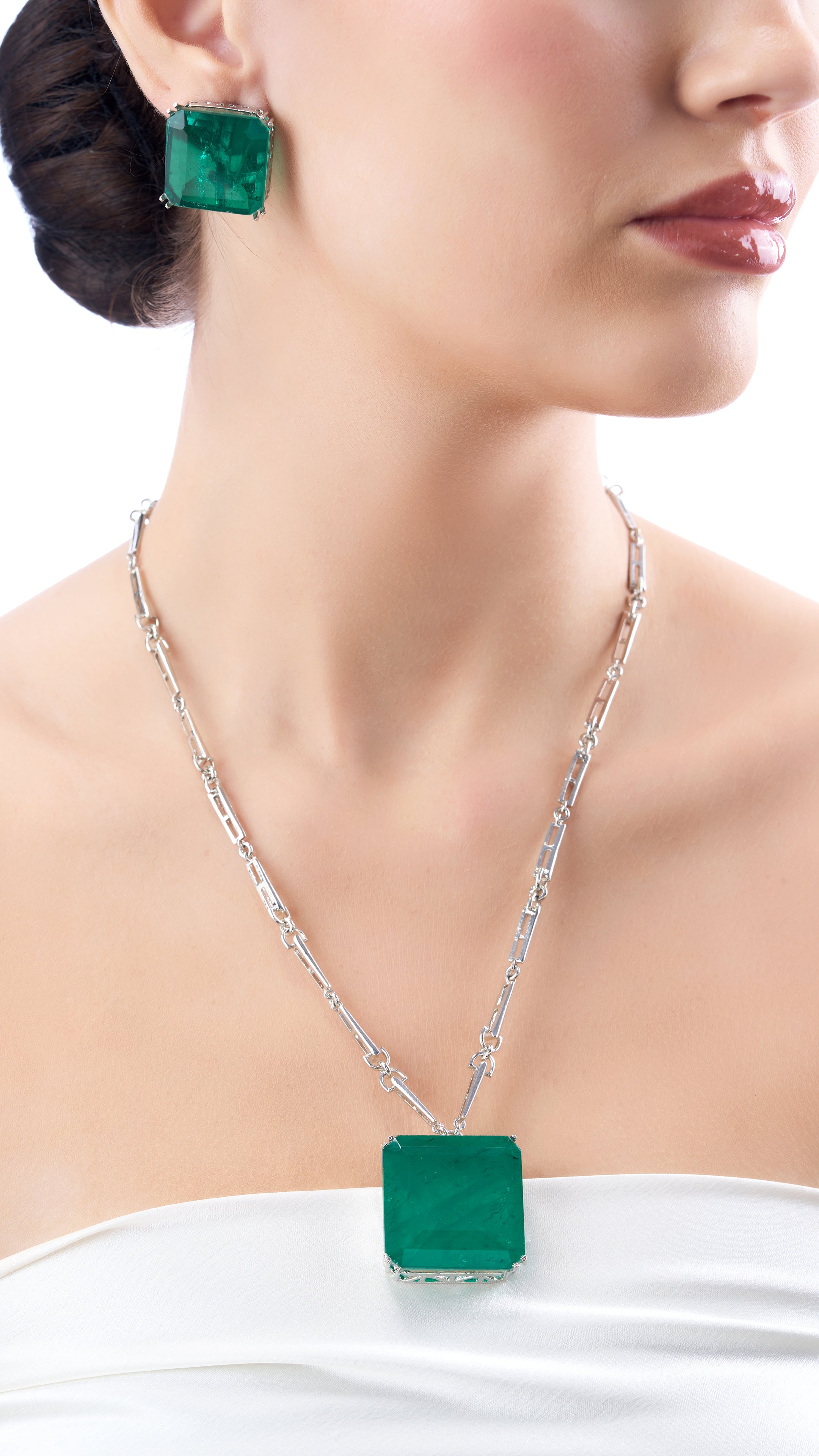 Bold statement doublet stone necklace set in green, featuring vibrant stones set in a sleek design for a striking, eye-catching look.