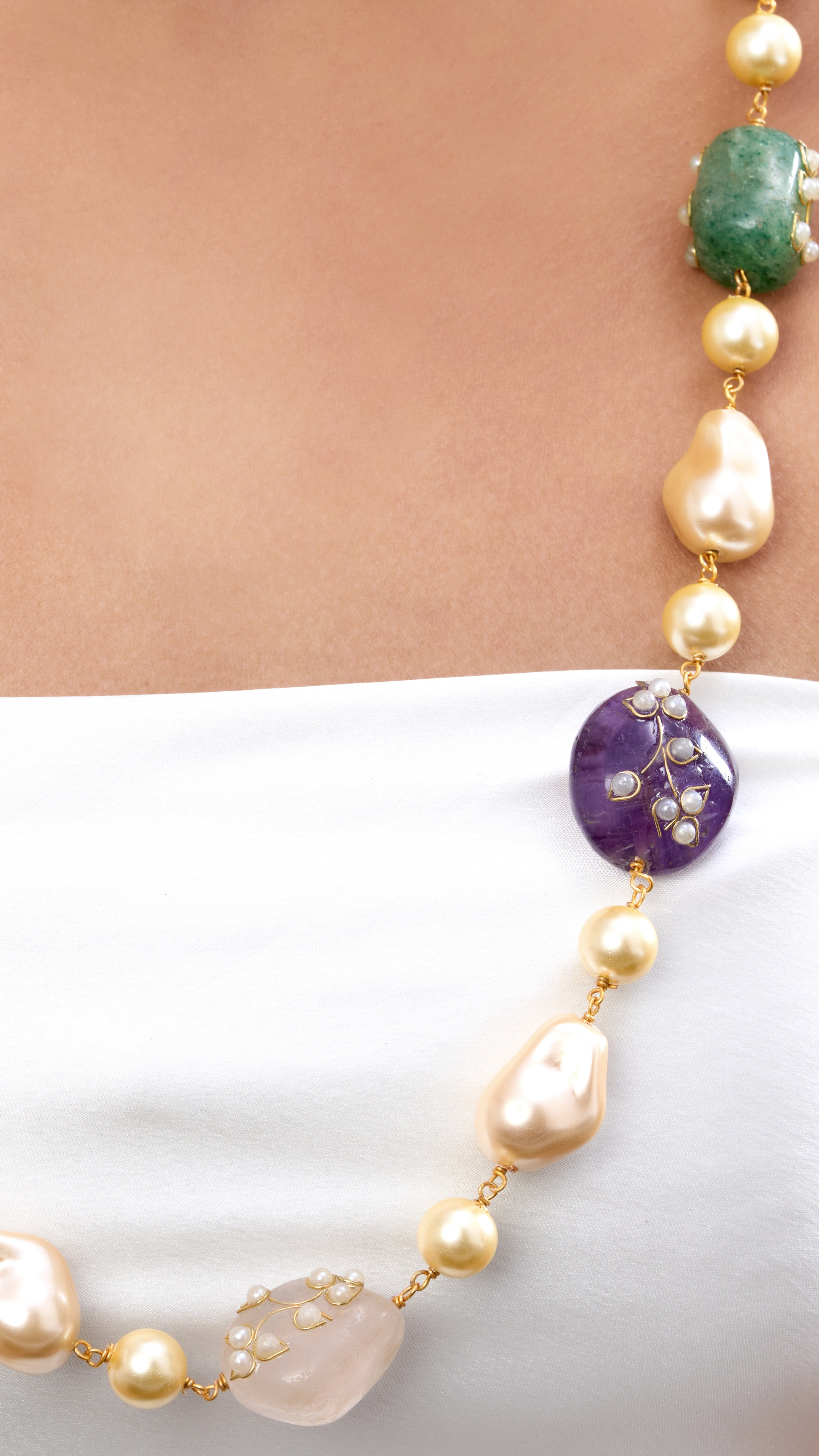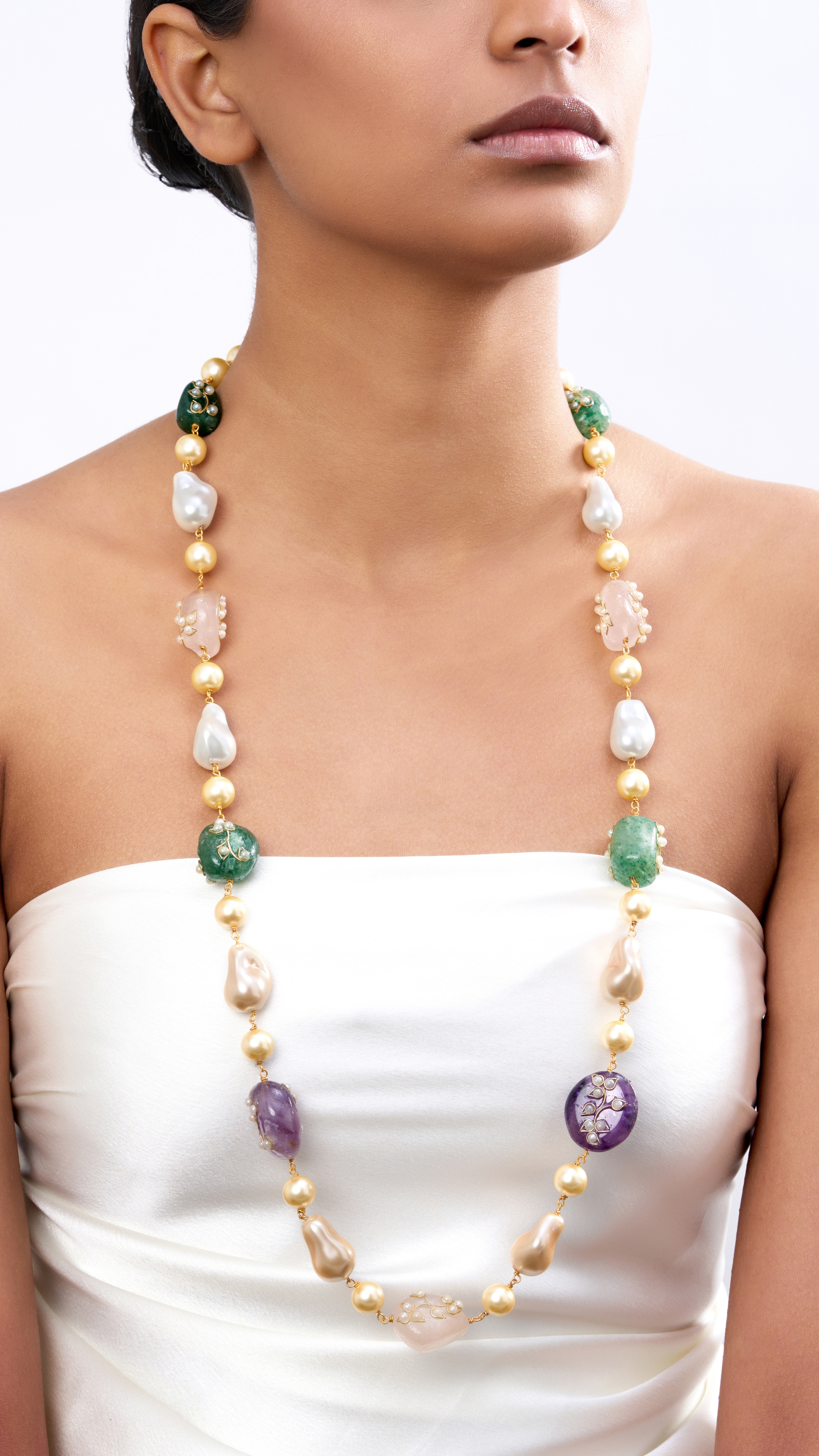 Indulge in the Exquisite: Carved Stone Baroque Strands. Revel in the allure of our Lustrous Baroque Strands, where each baroque pearl is meticulously paired with intricately carved stones. Crafted to perfection, these mesmerizing pieces resonate with sophistication, offering timeless elegance and understated grace. Elevate your style with the natural beauty of each unique strand.