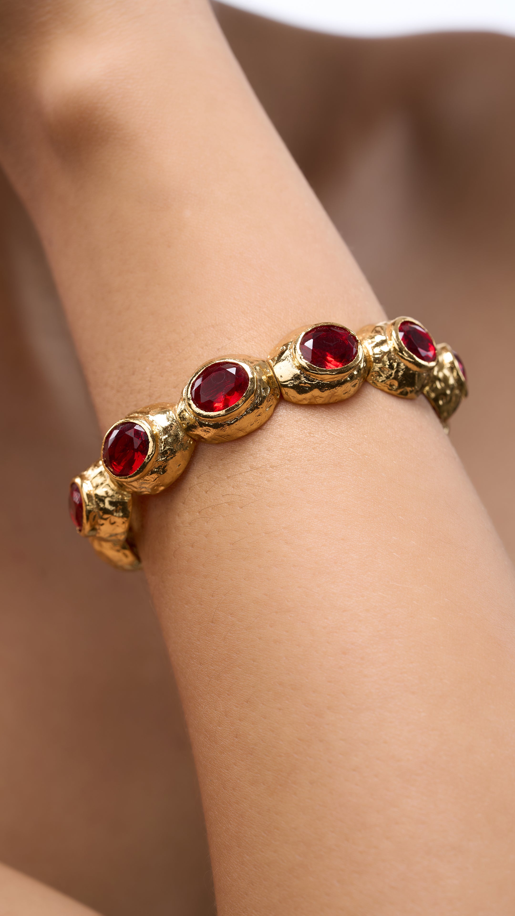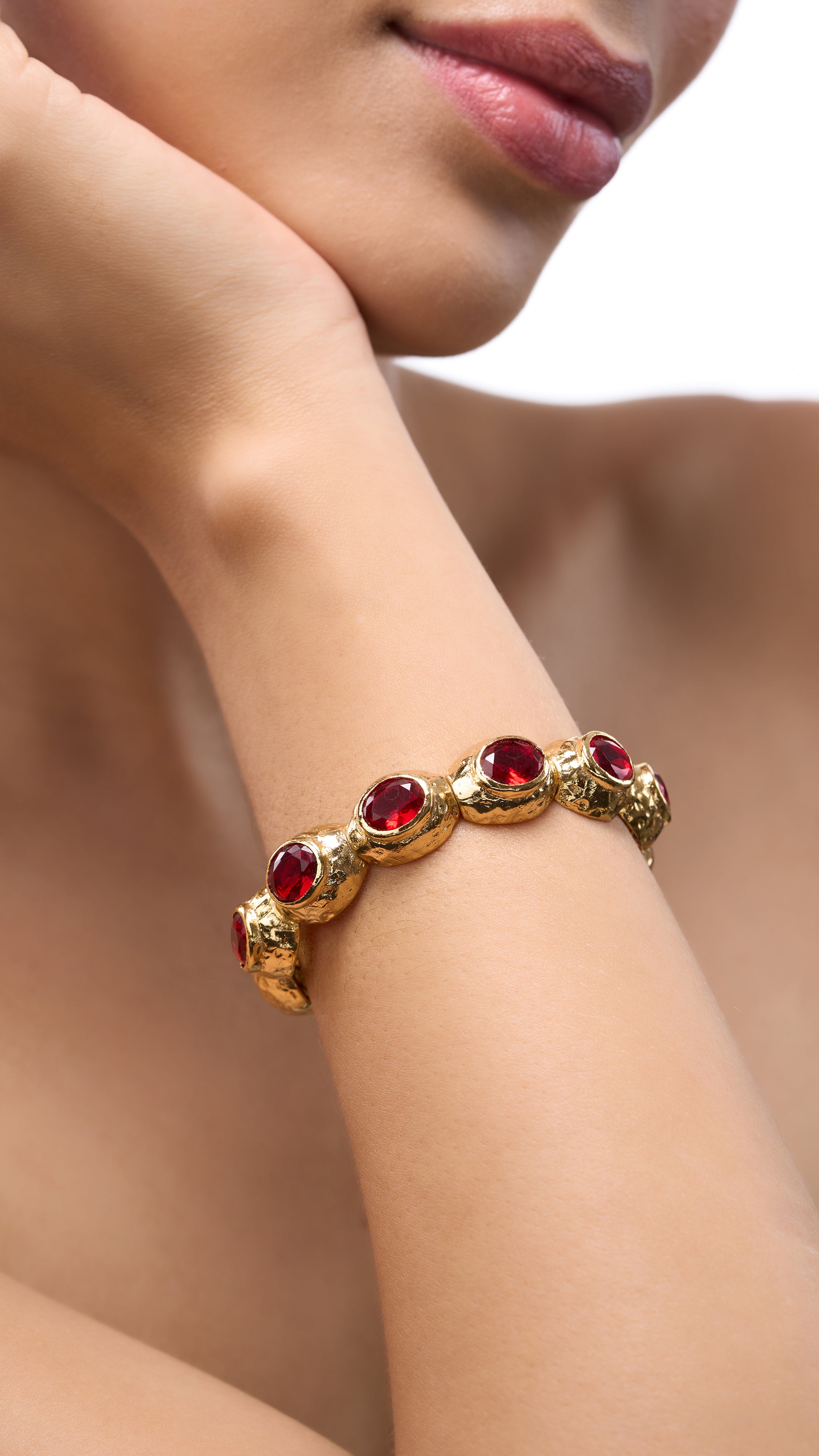 Stacking Gold Plated Bracelet with Semi-Precious Stones—a stylish and versatile accessory that adds a touch of elegance to any ensemble. This bracelet features a series of finely crafted gold-plated bands, each adorned with shimmering semi-precious stones. The stacking design allows for a customizable look, perfect for mixing and matching with other bracelets or wearing alone for a sophisticated statement. Ideal for both everyday wear and special occasions, this bracelet blends modern style with timeless charm.