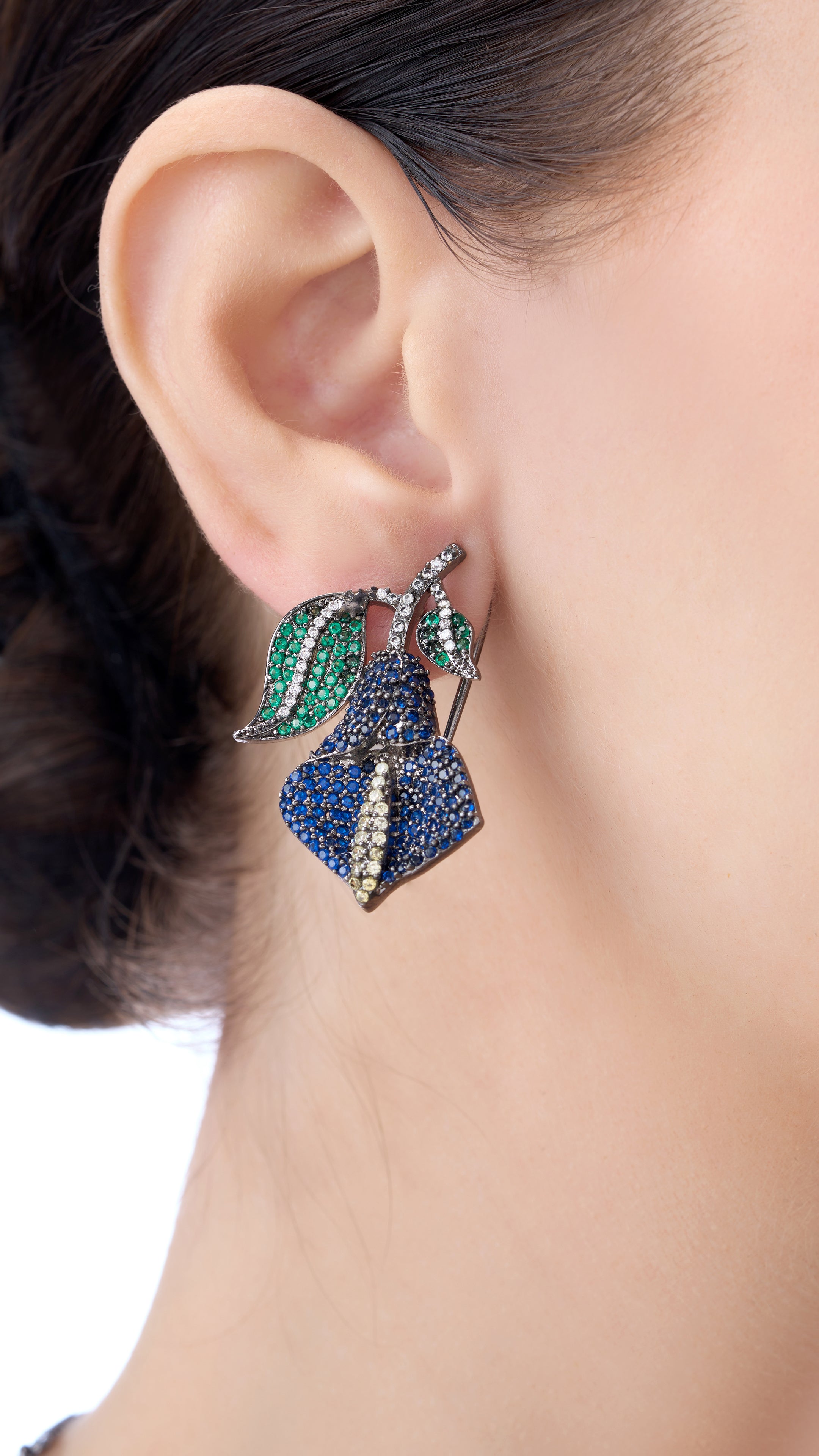 Stunning abstract crystal Victorian flower and leaf necklace set, featuring blue and green crystals, offering a perfect blend of intricate design and vibrant elegance.