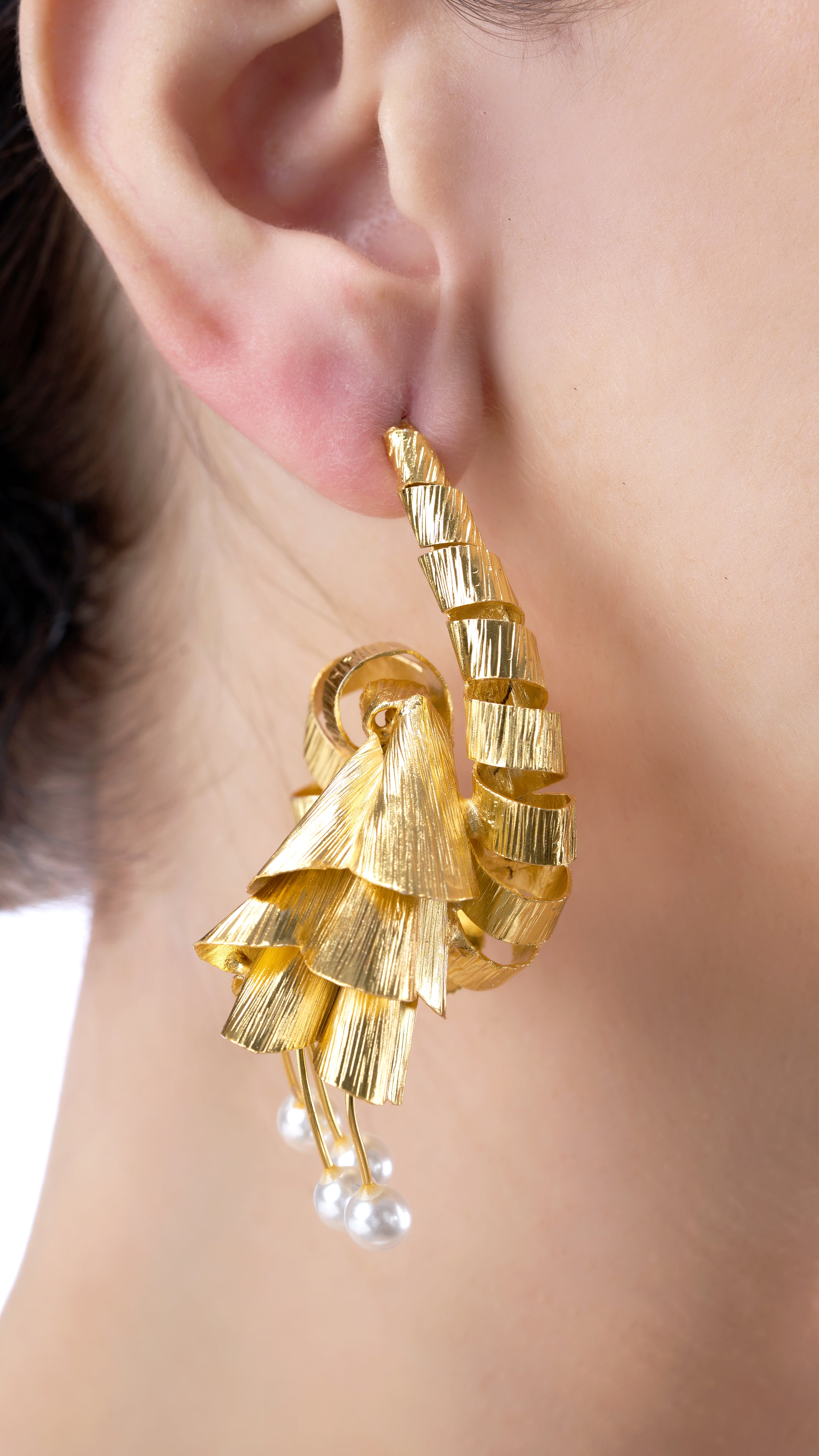 Vasudha abstract peacock filigree earrings with pure pearls