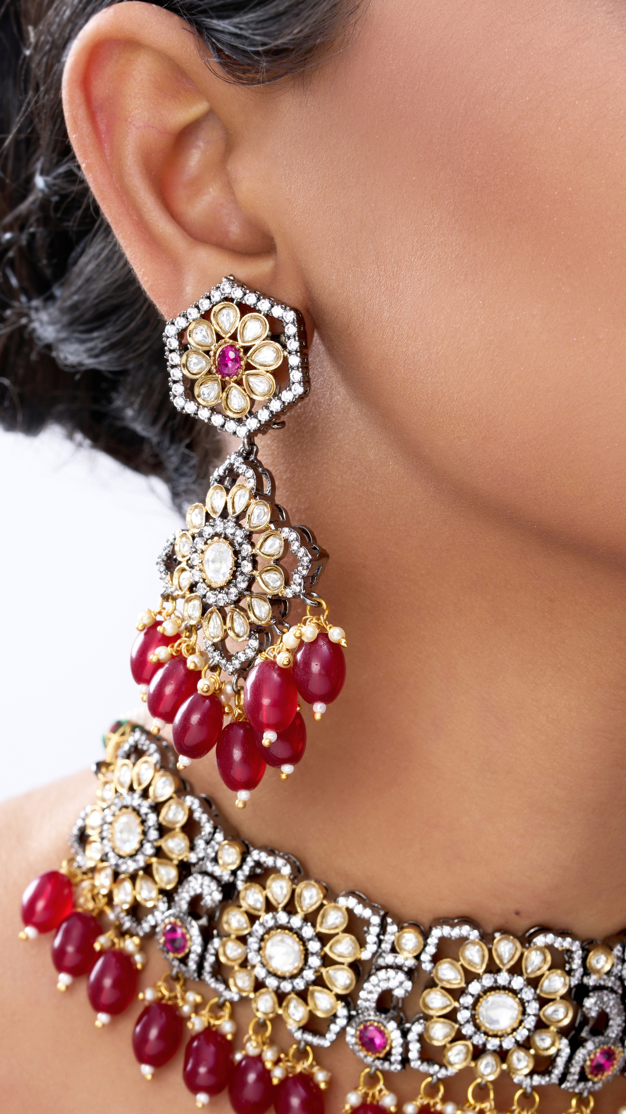 Mahima victorian & ruby necklace set