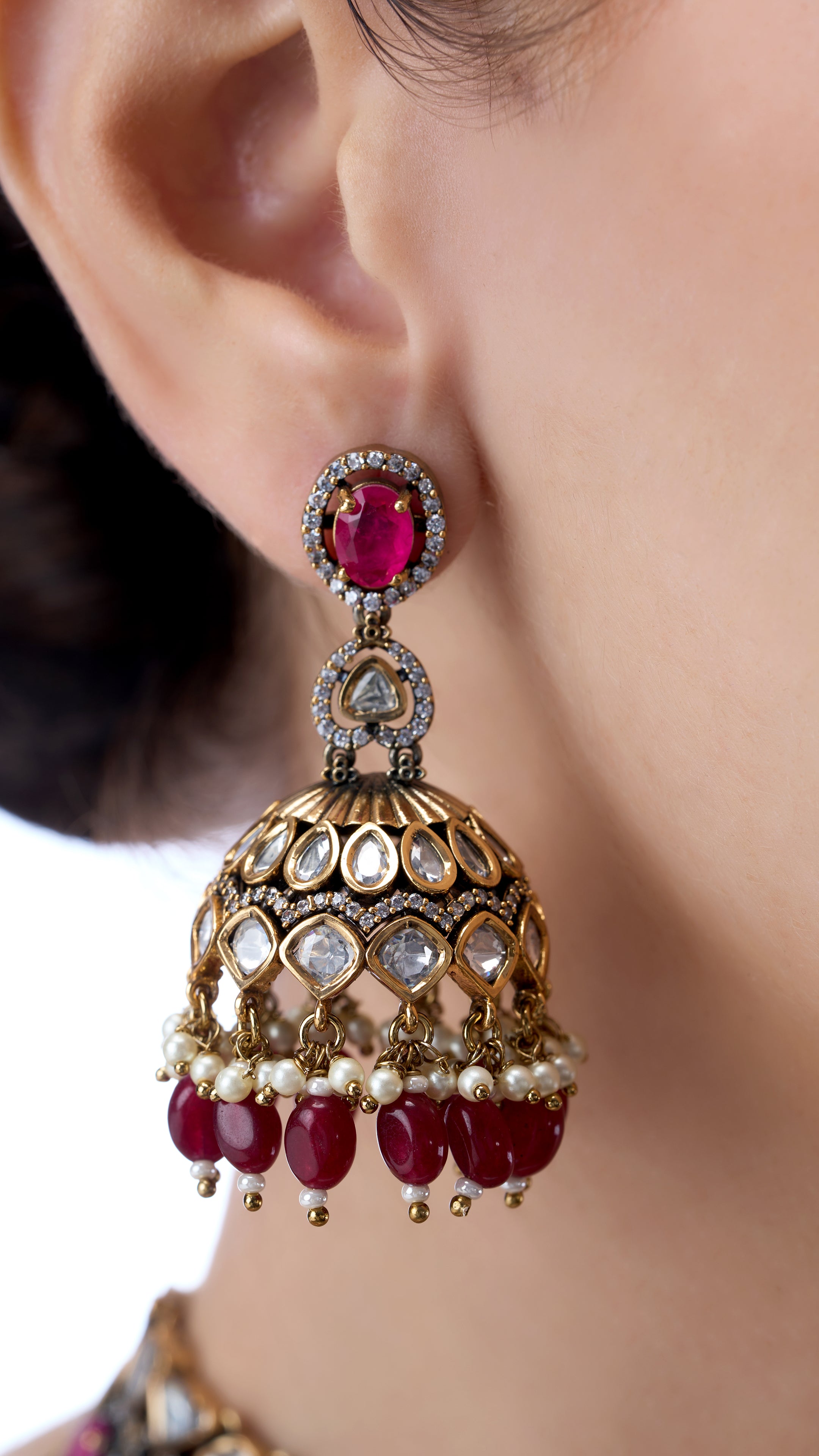 Victorian choker necklace set, adorned with rich red semi-precious stones, combines vintage charm with bold design. A captivating piece that adds drama and elegance to any festive or special occasion.