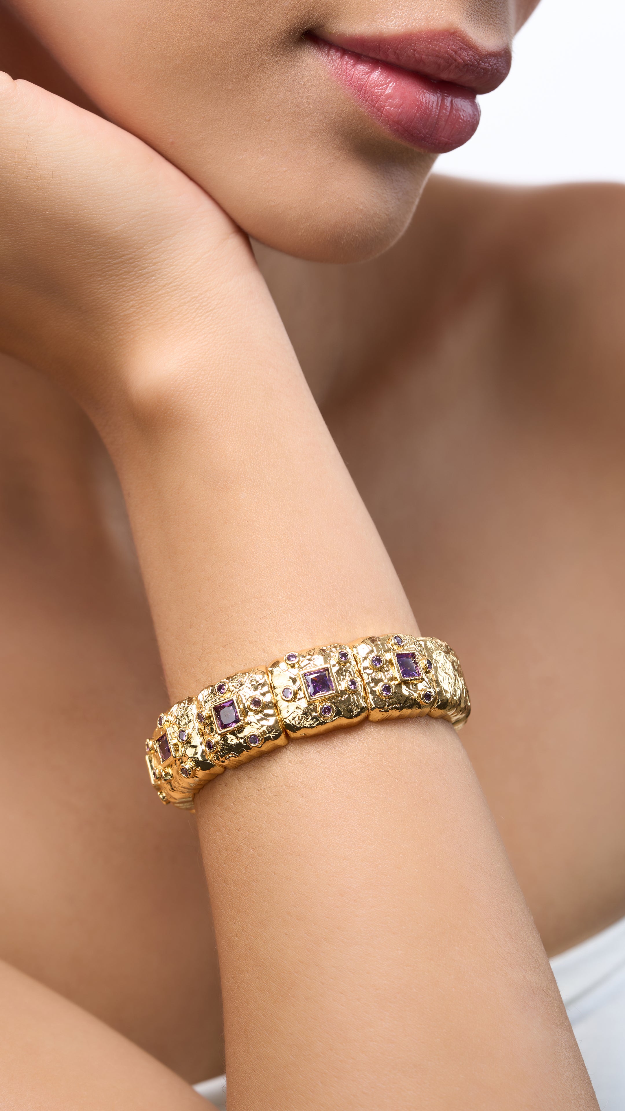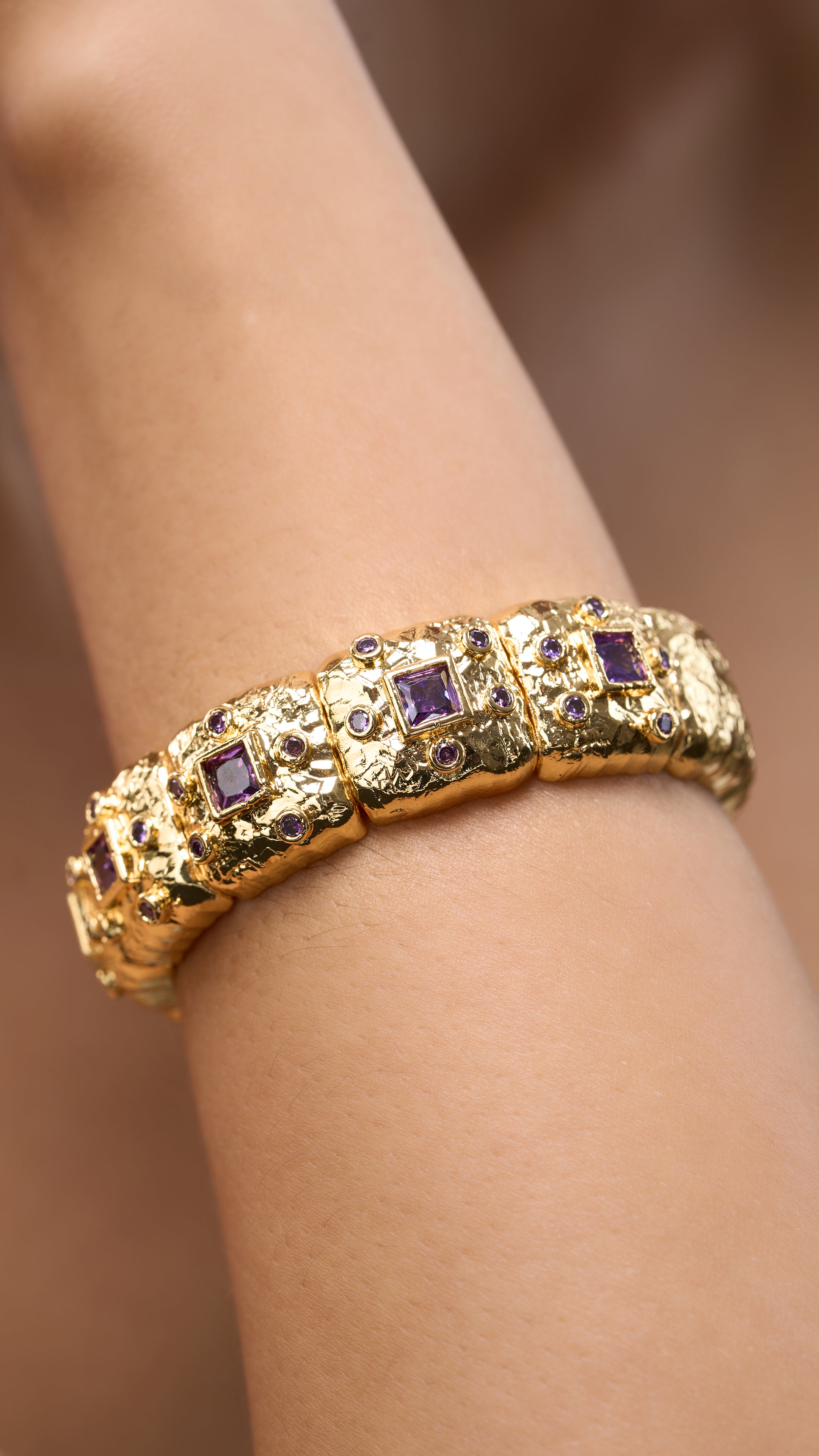 Stacking Gold Plated Bracelet with Semi-Precious Stones—a stylish and versatile accessory that adds a touch of elegance to any ensemble. This bracelet features a series of finely crafted gold-plated bands, each adorned with shimmering semi-precious stones. The stacking design allows for a customizable look, perfect for mixing and matching with other bracelets or wearing alone for a sophisticated statement. Ideal for both everyday wear and special occasions, this bracelet blends modern style with timeless charm.